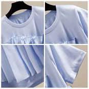 Nomikuma ひだパッチワーク Tシャツ因果半袖 O ネック Tシャツトップス夏甘いシックなグラフィック Tシャツ ショート ハーフスリーブ 大人ガーリー スウィート キュート カジュアル サマー 夏物 Oネック