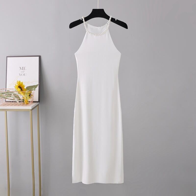 Nomikuma セクシーなビーズホルターネックスリムストレッチスパゲッティストラップドレス無地春夏 Vestidos スプリング 春物 サマー 夏物 ソリッドカラー