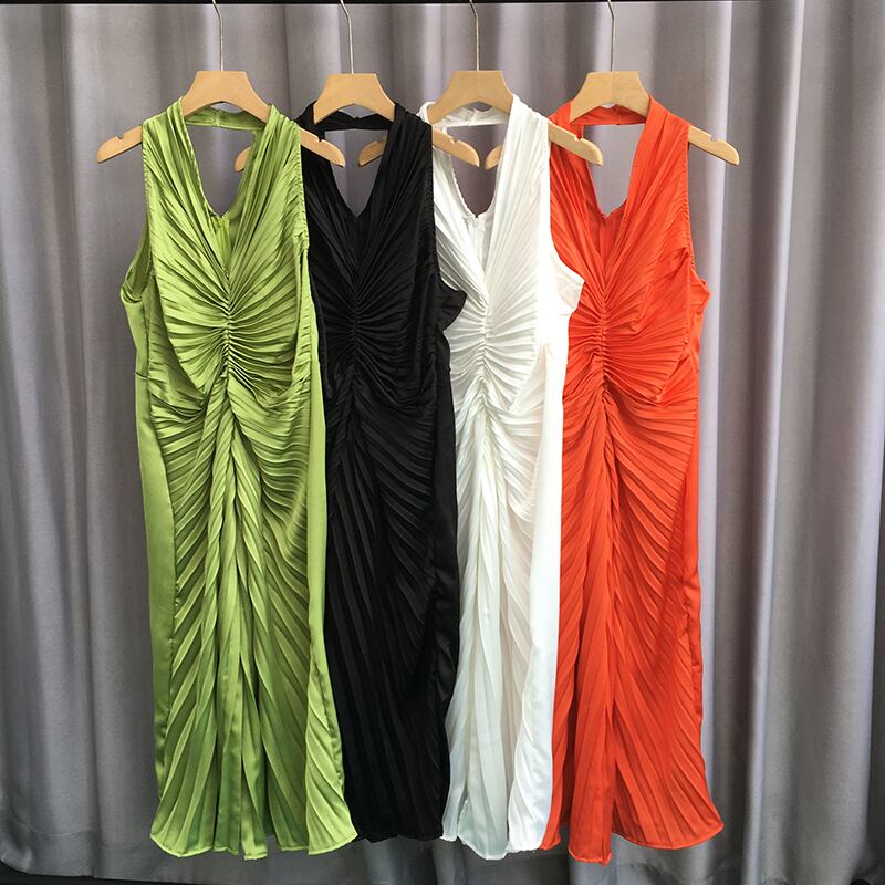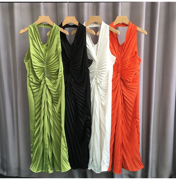 Nomikuma 無地ノースリーブひだ V ネックドレス Sumemr ドレス因果スプリット A ライン Vestidos Vネック Aライン ソリッドカラー