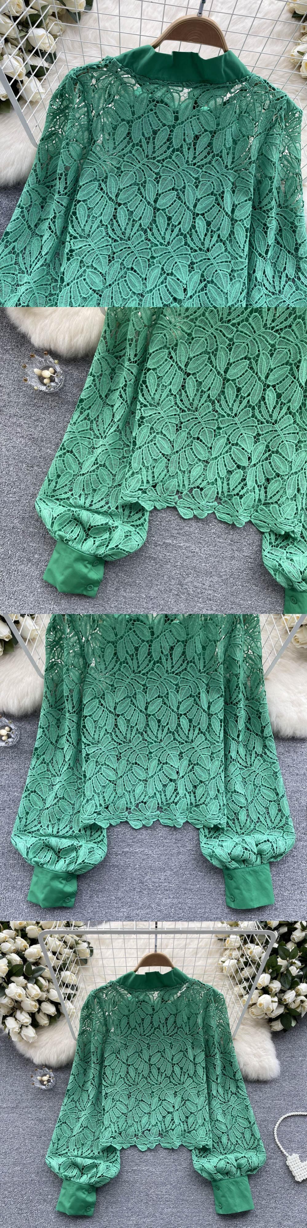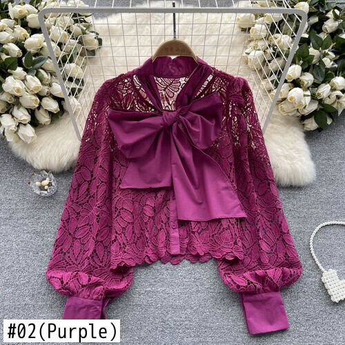 Nomikuma 因果パフスリーブレースシャツ春弓包帯セクシーシースルーブラウス リボン スプリング 春物