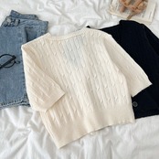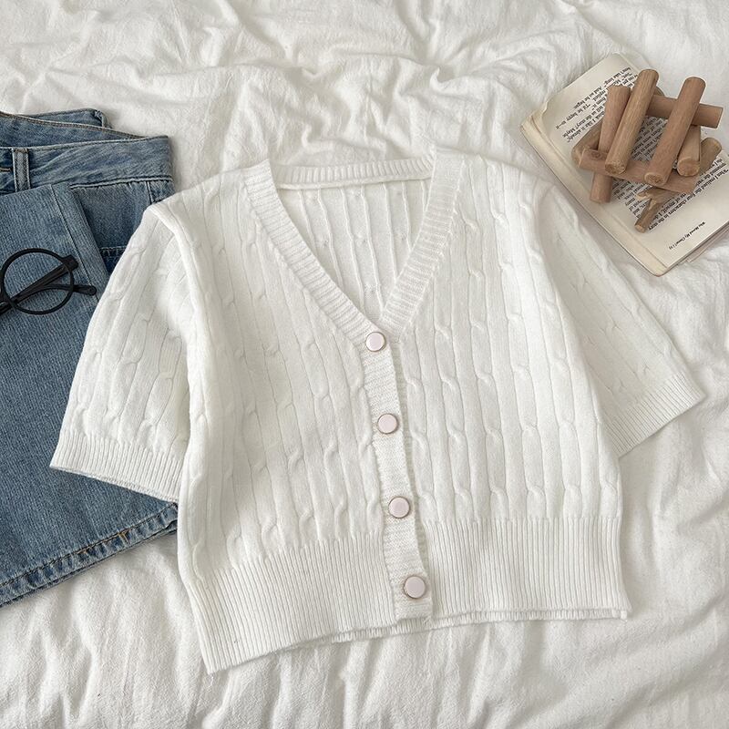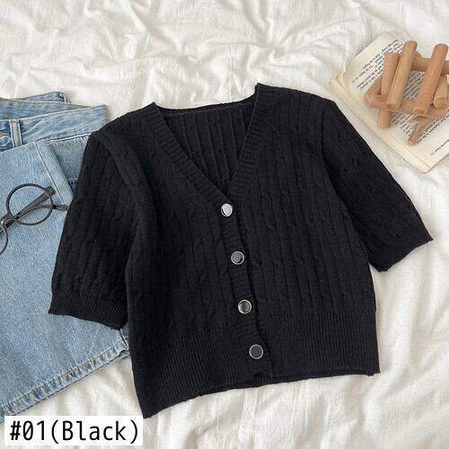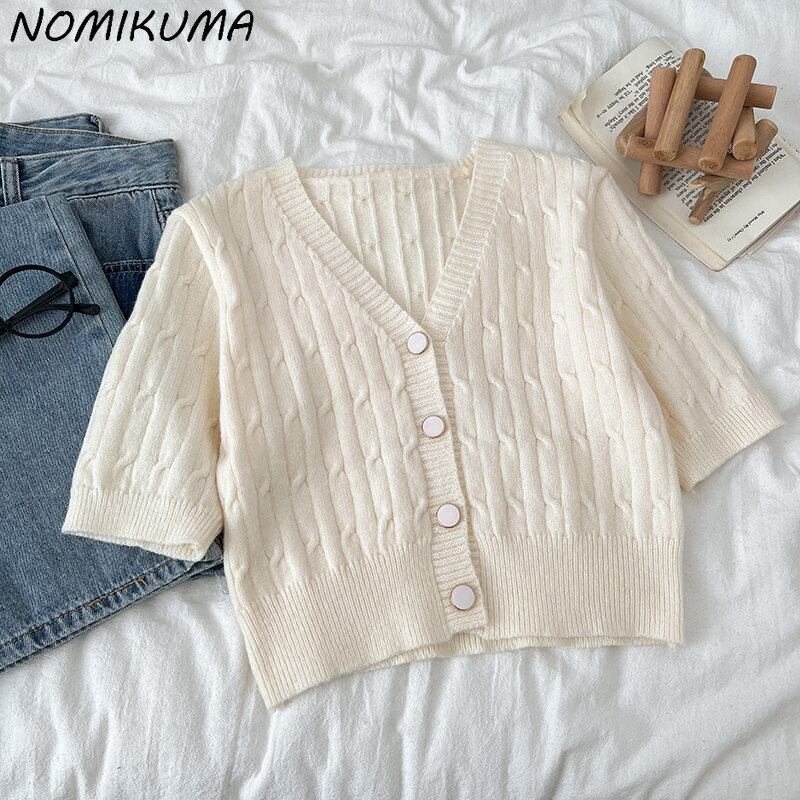 ノミクマツイストショートニットカリガン半袖Vネックセーターコート春夏ニットトップス ハーフスリーブ スプリング 春物 サマー 夏物