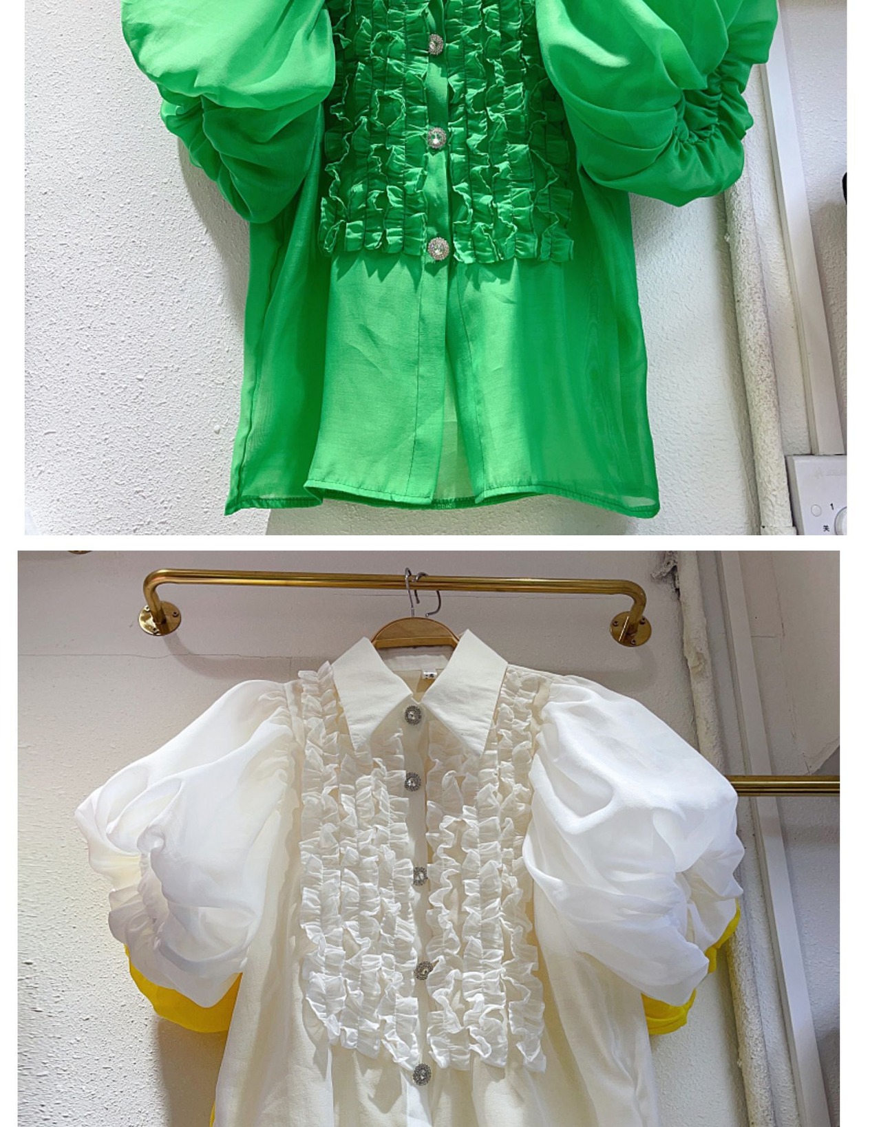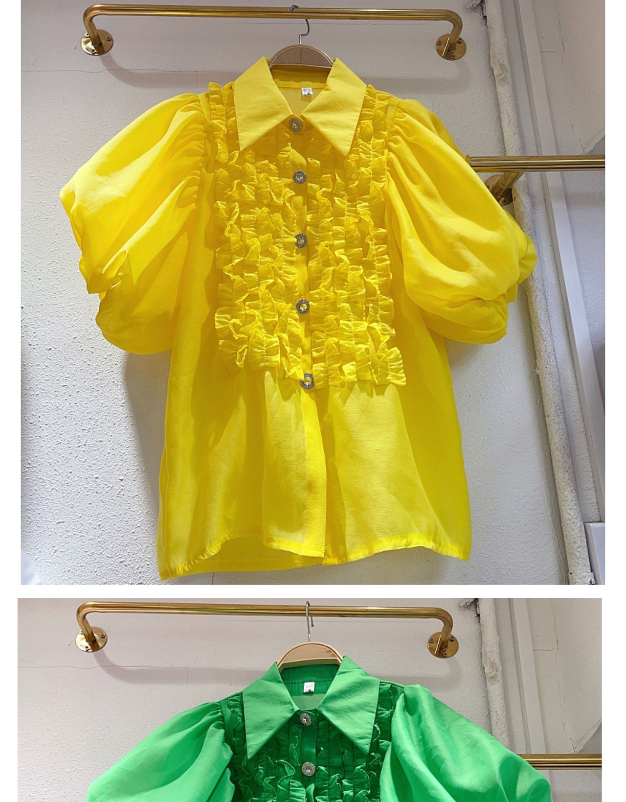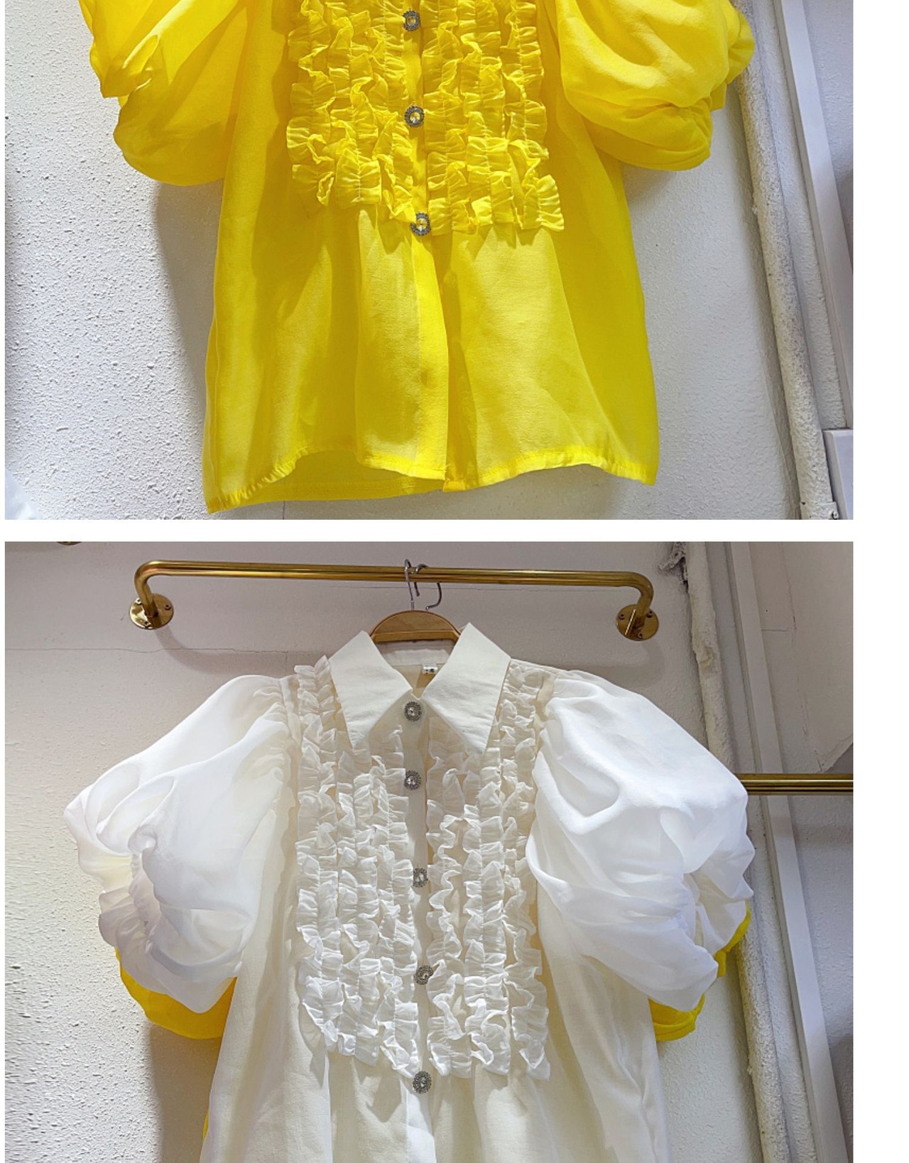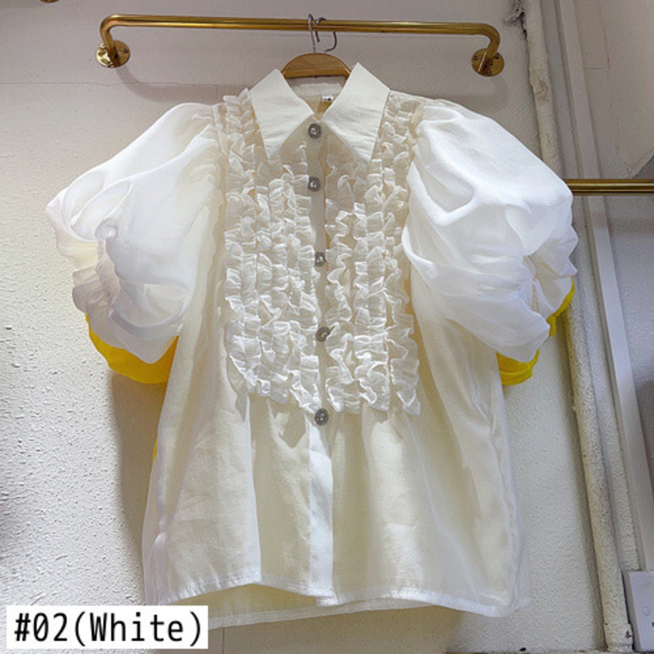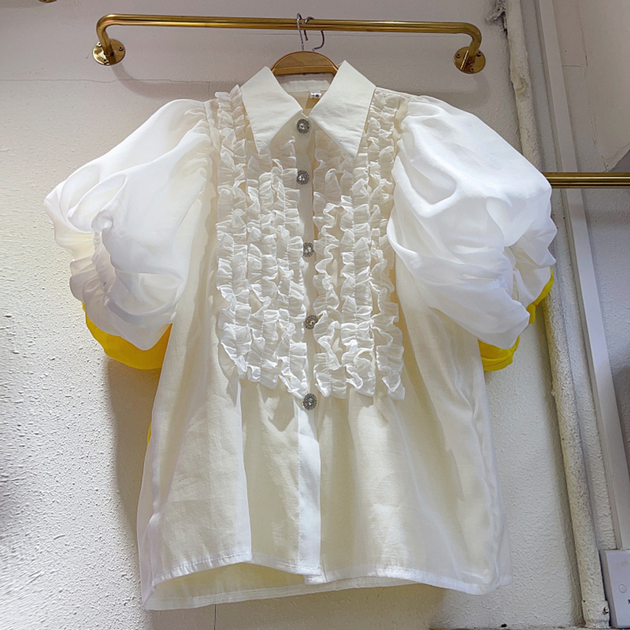 Nomikuma 甘い食用木菌フリルパッチワーク襞ランタンスリーブシングルブレストブラウス因果トップ 大人ガーリー スウィート キュート カジュアル