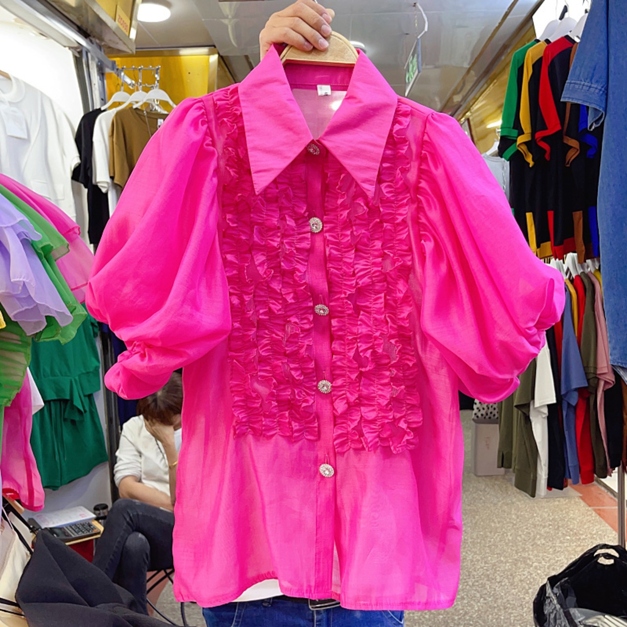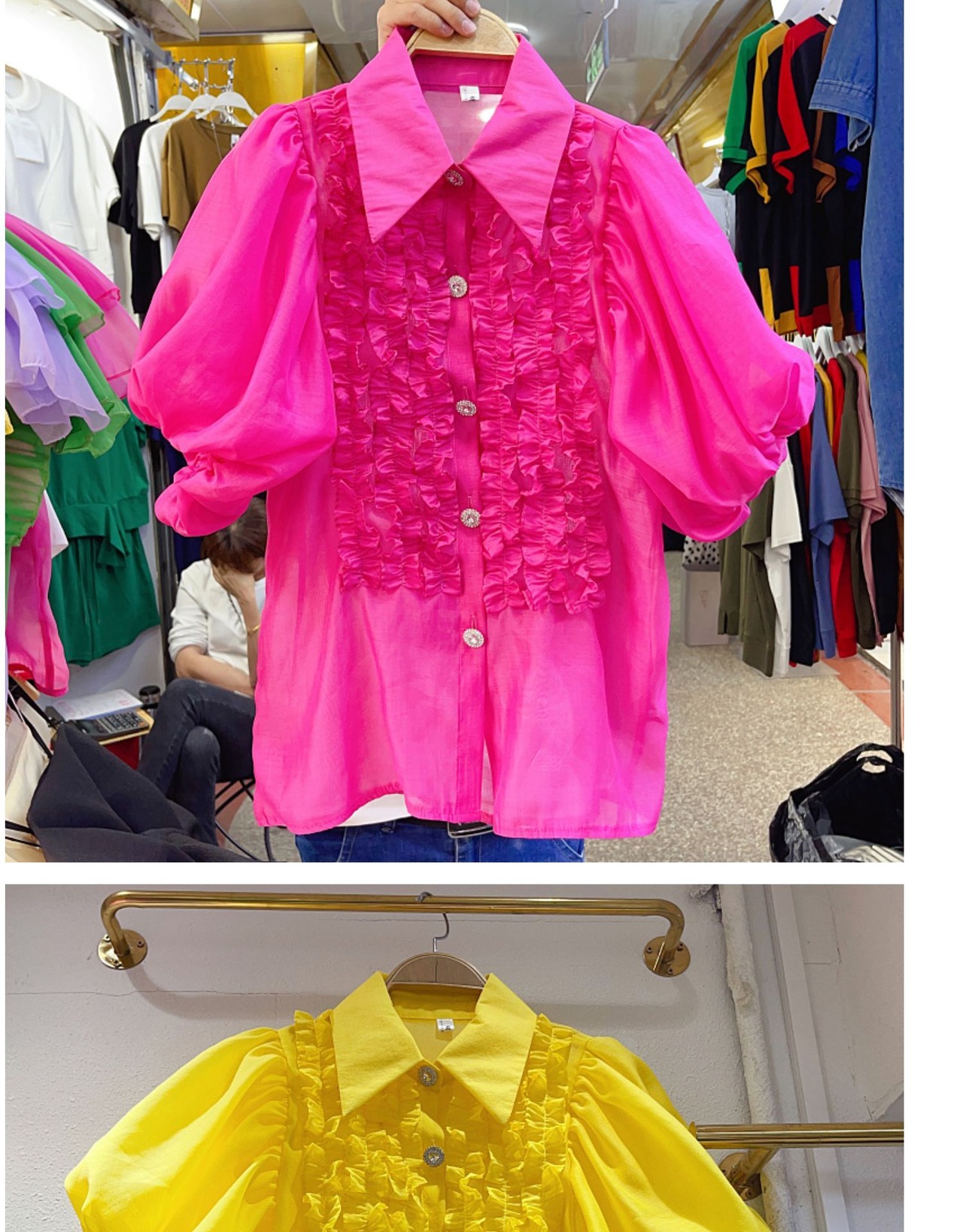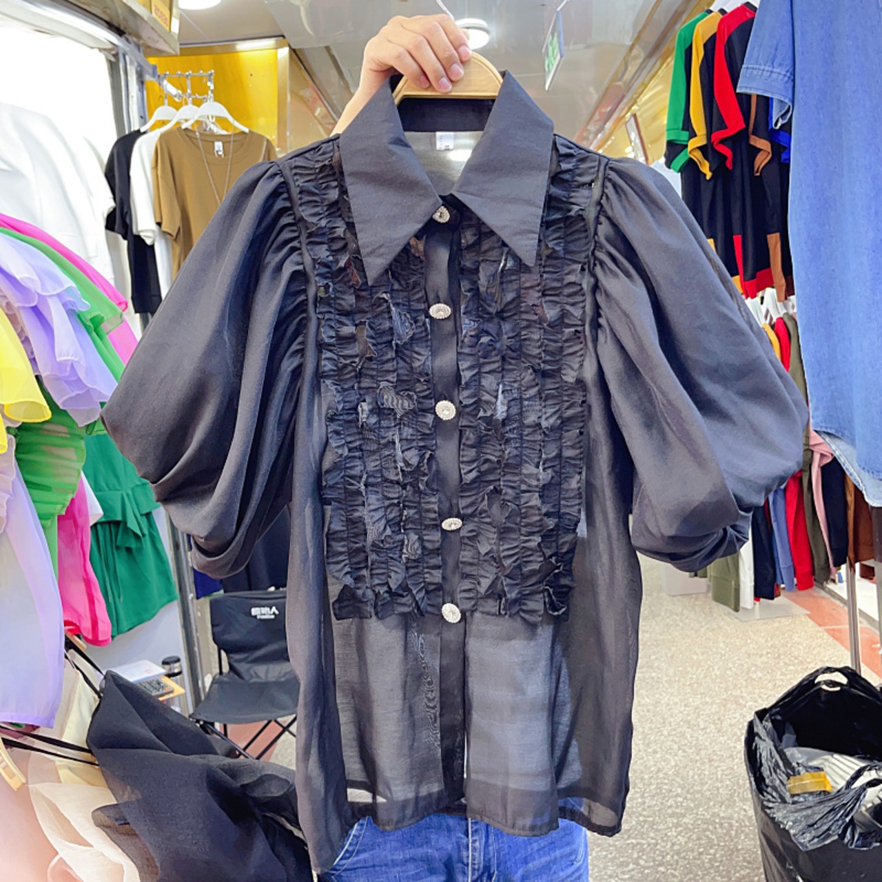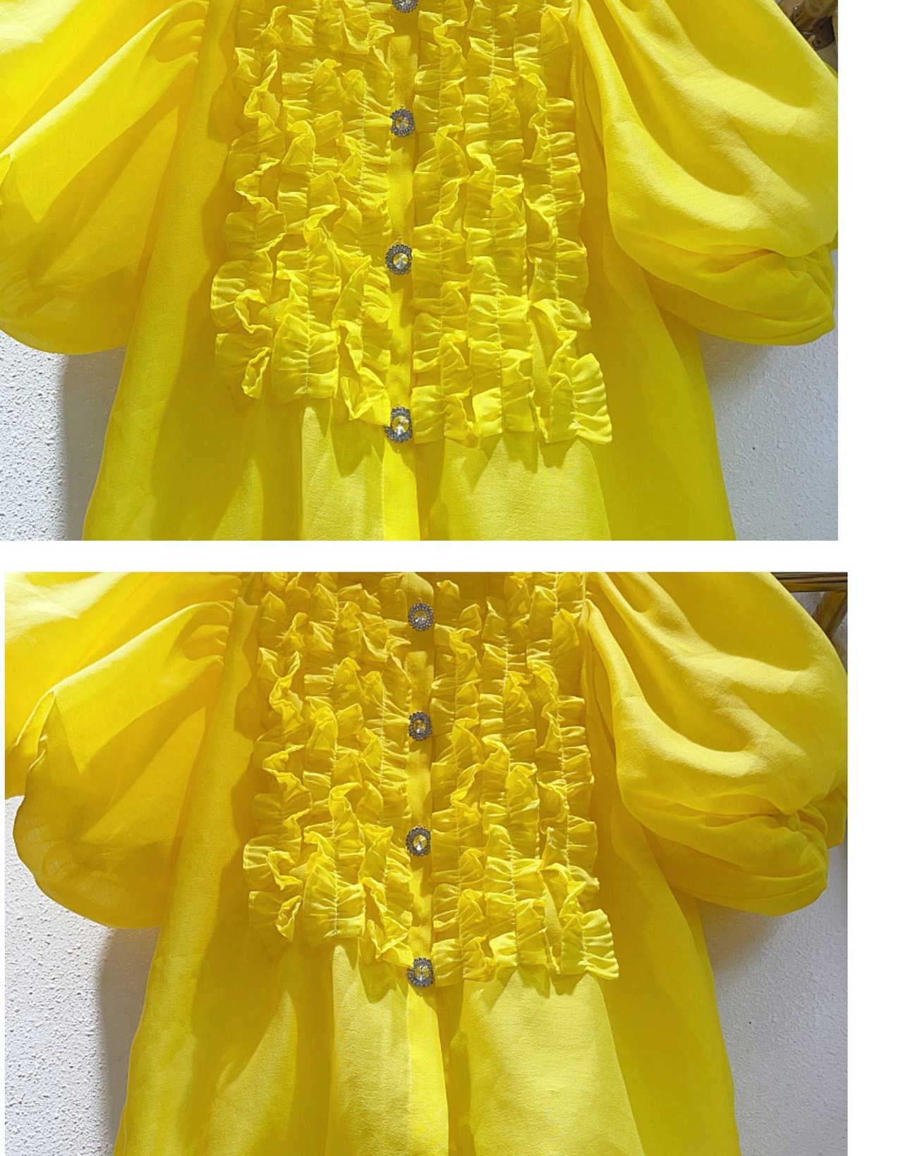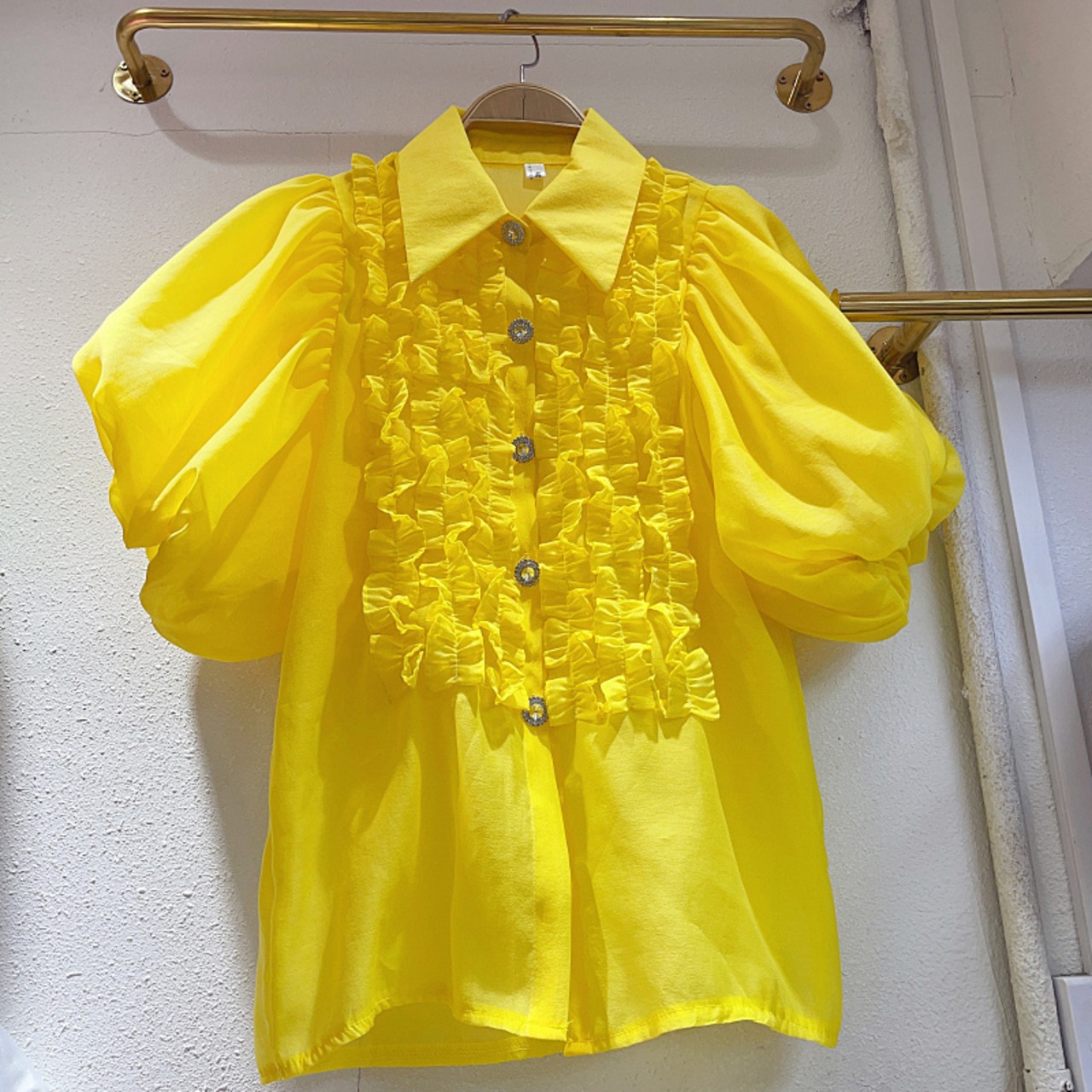 Nomikuma 甘い食用木菌フリルパッチワーク襞ランタンスリーブシングルブレストブラウス因果トップ 大人ガーリー スウィート キュート カジュアル