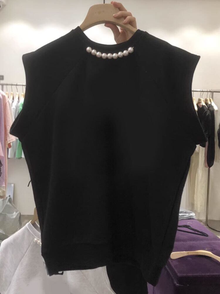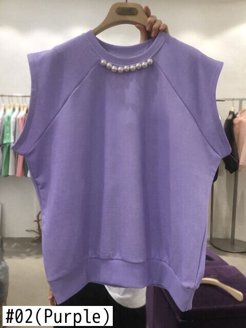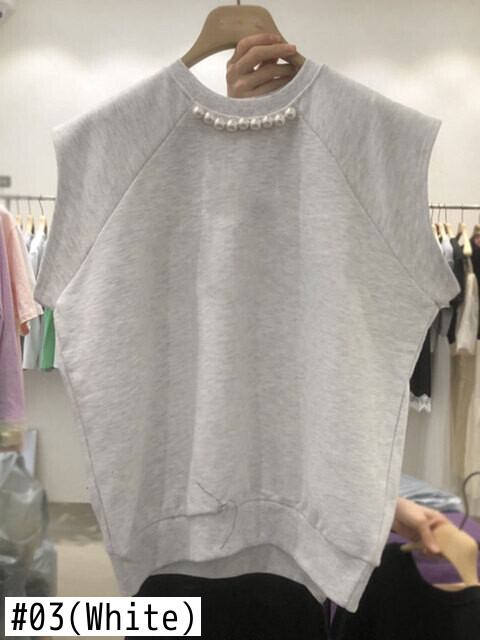 Nomikuma 春 Sumemr O ネックビーズ因果ノースリーブ Tシャツソリッドプルオーバーグラフィック Tシャツ スプリング 春物 Oネック ソリッドカラー