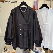 Nomikuma Tel シングル ブレスト ブラウス トップス因果長袖 V ネックシャツ スタイル デ ロング Vネック