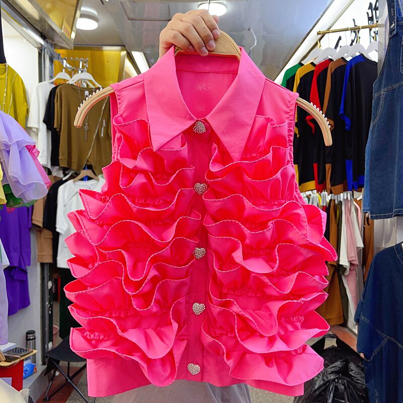 Nomikuma シック後でフリル パッチワーク ブラウス トップス ノースリーブ ターンダウン襟シャツ夏 サマー 夏物