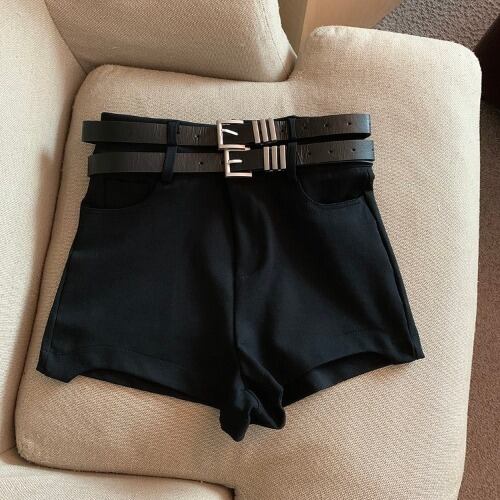 Nomikuma ダブル ベルト ウエストショーツ夏ボトムス セクシー ワイドレッグ ショート Feminimos サマー 夏物 ハーネス ブルマー ワイドパンツ