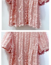 Nomikuma 夏スウィートシフォンフリルパッチワーク Tシャツ因果パフスリーブ O ネック Tシャツトップス 大人ガーリー キュート カジュアル サマー 夏物 Oネック