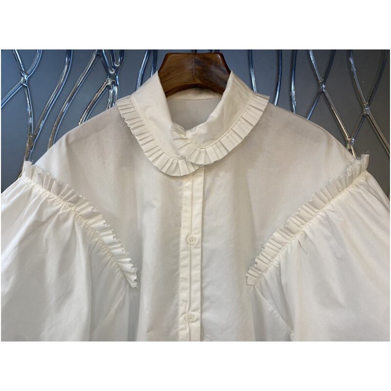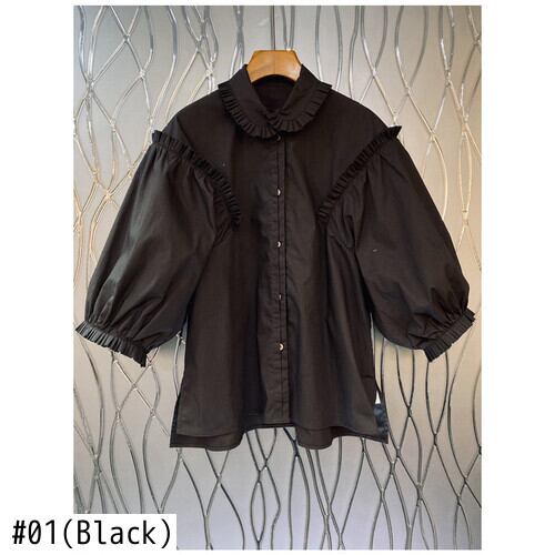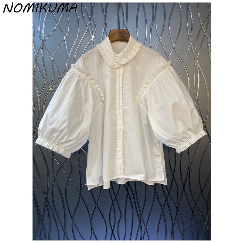 ノミクマサマースウィートパフスリーブピーターパンカラーブラウスシャツCausal Chic De Moda 大人ガーリー キュート カジュアル 夏物