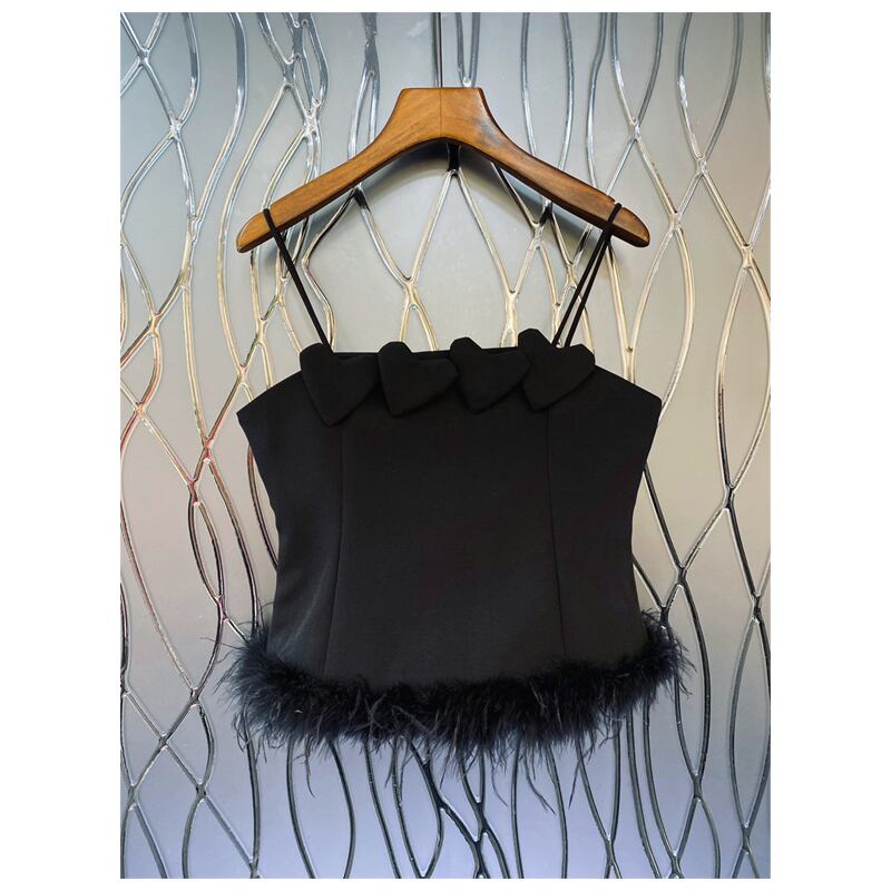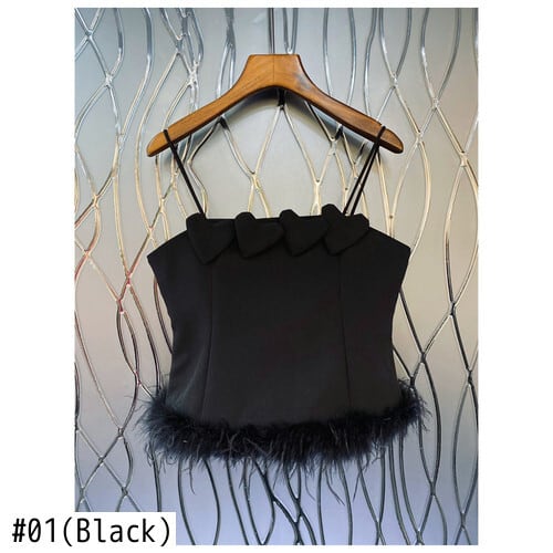 Nomikuma シック 3D ラブハートスリングベストフェザー電話パッチワークショートキャミソール夏スリムタンクトップ サマー 夏物