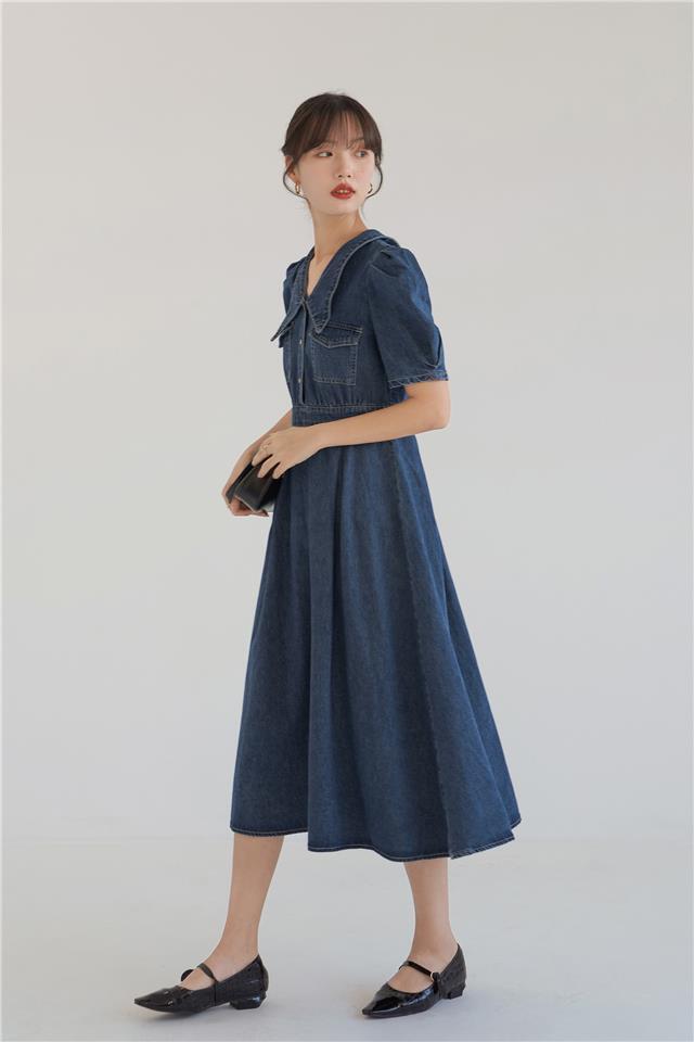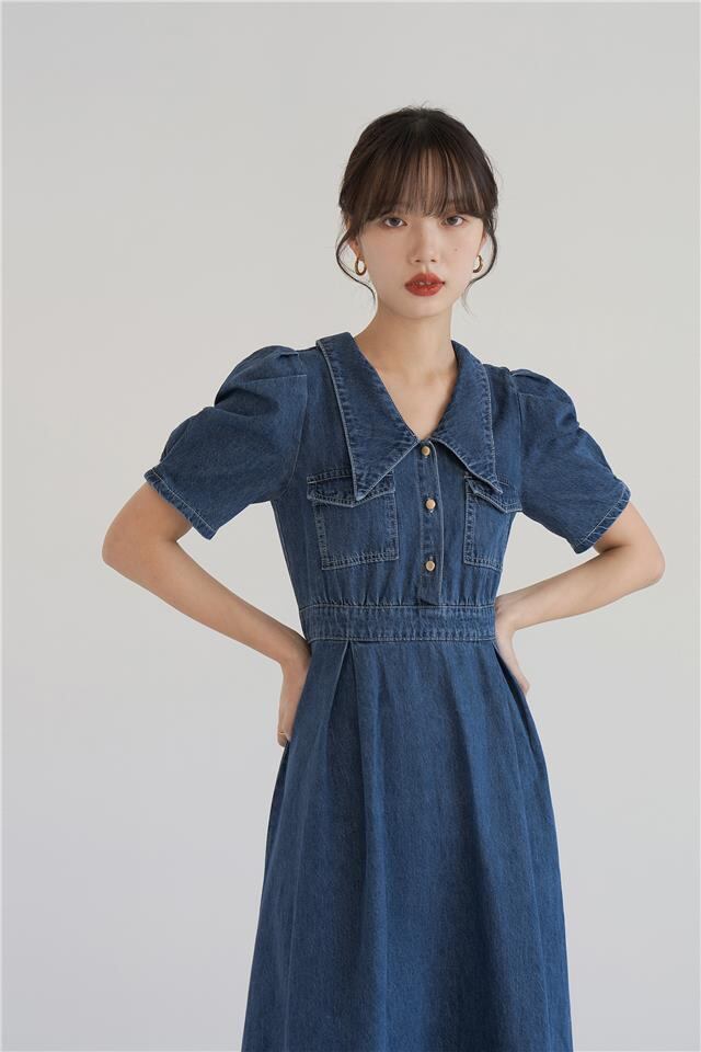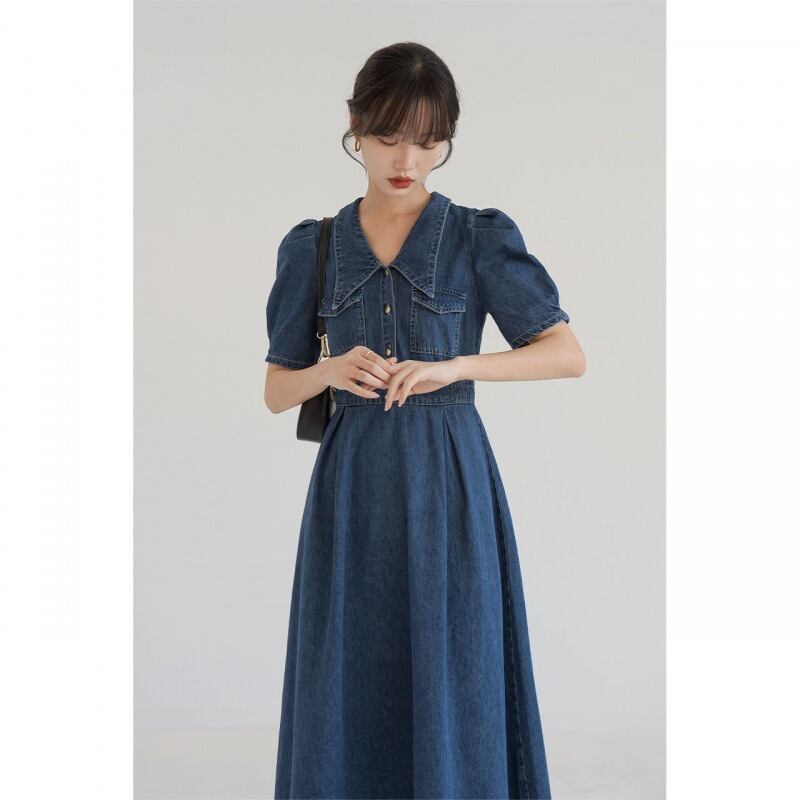 Nomikuma スリムウエスト徳民ドレスパフ半袖ターンダウン襟ドレス夏ジーンズ Vestidos ショート ハーフスリーブ サマー 夏物
