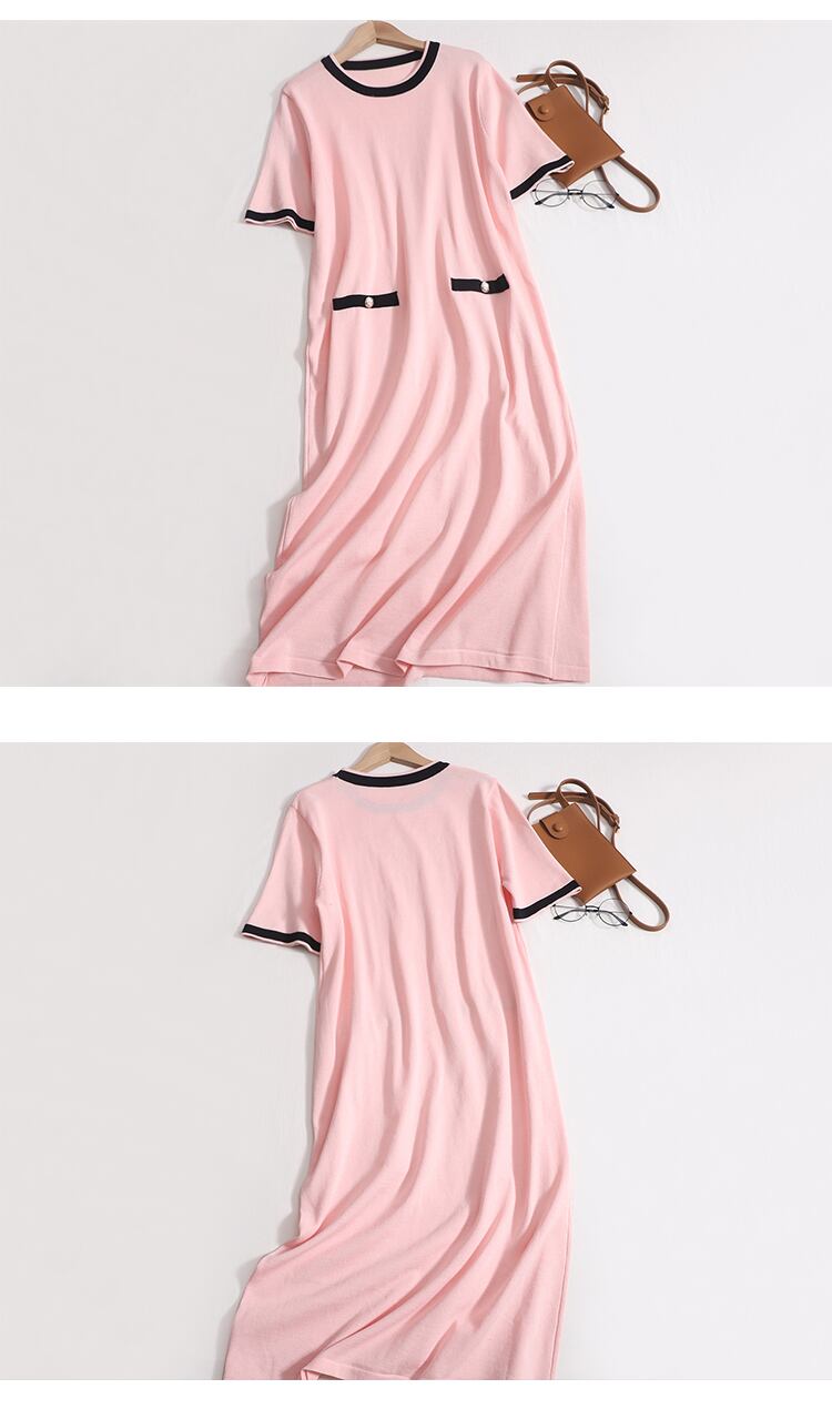 ノミクマ サマーヒットカラー 半袖 Oネック セータードレス カジュアルニットロングローブ Vestidos ショート ハーフスリーブ 夏物