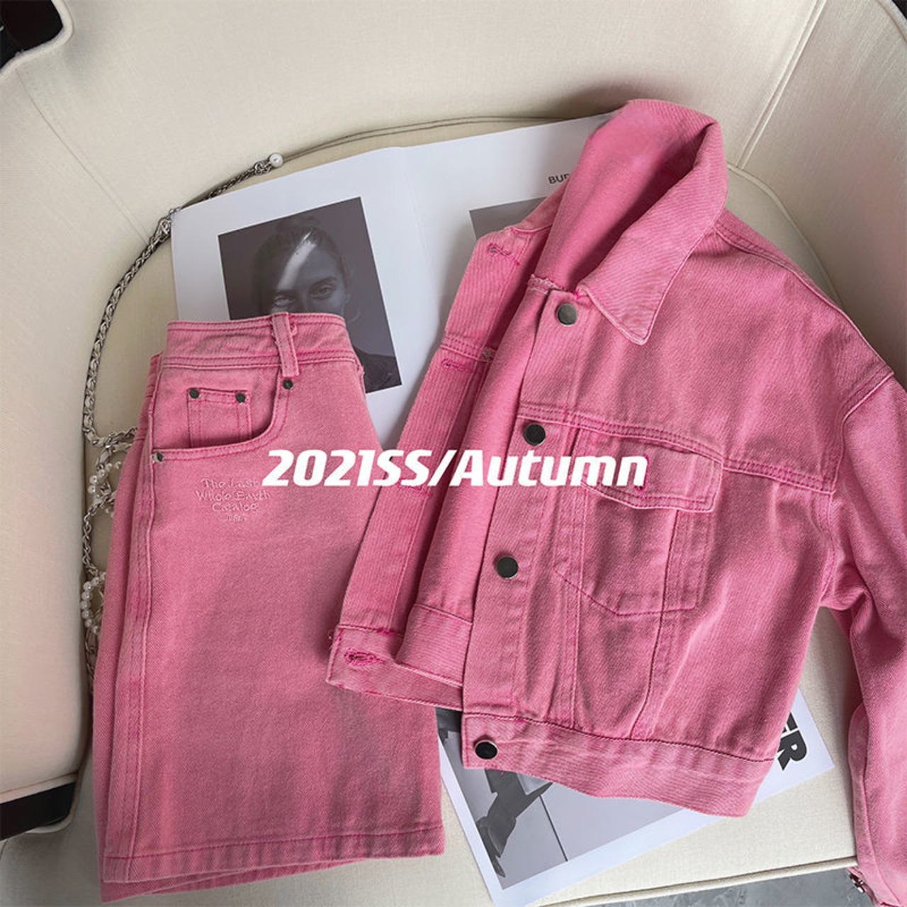 Nomikuma 秋ツーピースセット長袖ターンダウン Colalr Demin コート + ウエスト A ラインジーンズスカート 2 ピース ロング オータム 秋物 Aライン