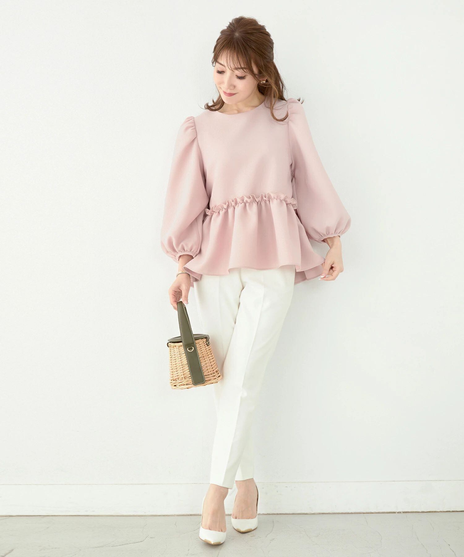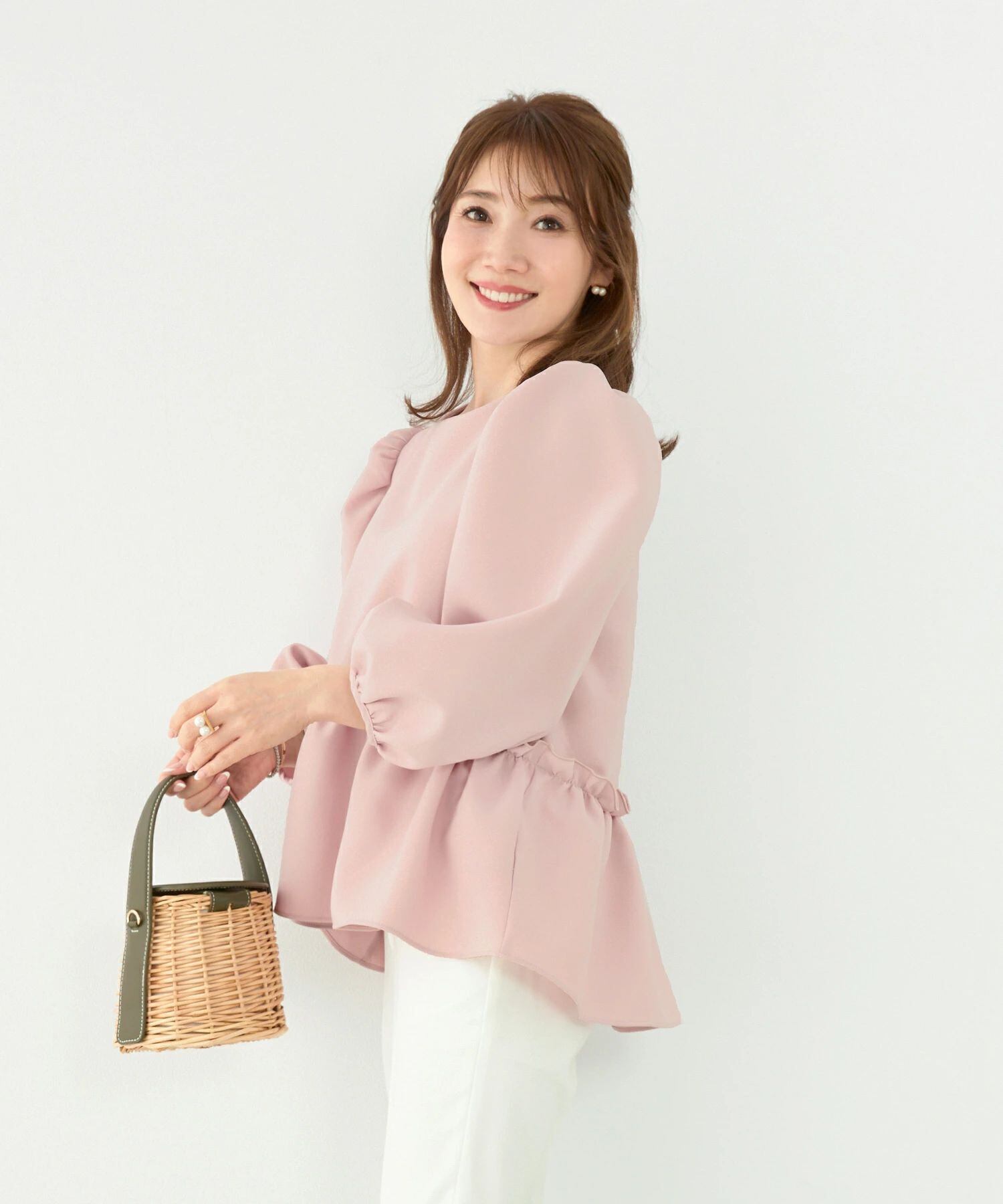 ノミクマスタイル スウィート パフスリーブ Oネック ドールシャツ シック フリル 春夏 ブラウス トップス カジュアル 無地 大人ガーリー キュート スプリング 春物 サマー 夏物 ソリッドカラー