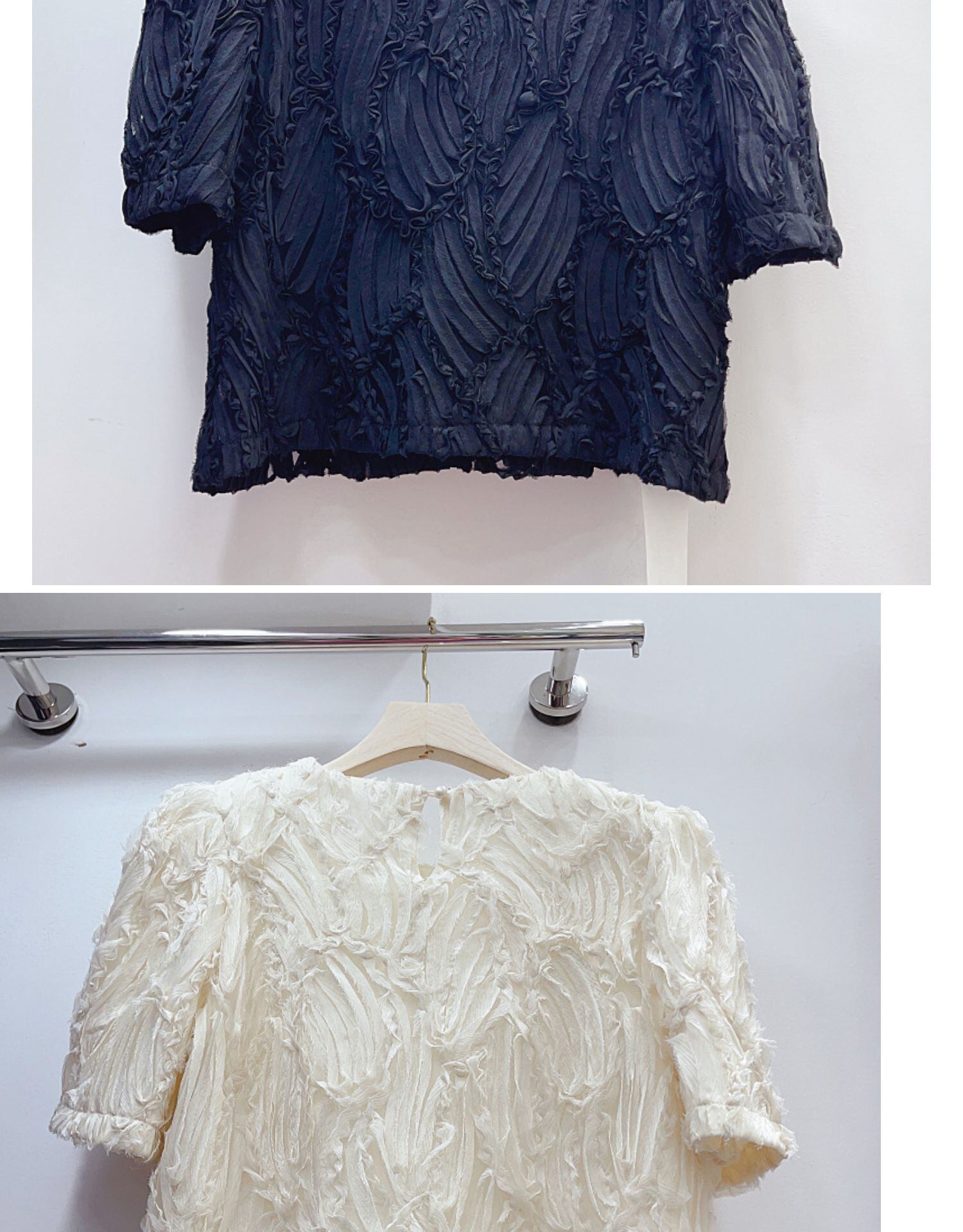 Nomikuma シック 3D ジャカードブラウストップス甘いパフスリーブ O ネックシャツ夏ショートデ 大人ガーリー スウィート キュート カジュアル サマー 夏物 Oネック