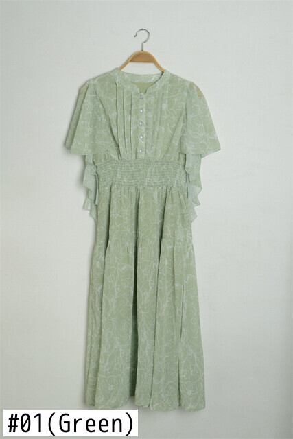 Nomikuma 印刷フライングスリーブスタンドネックドレス夏スタイルスリムウエスト A ラインドレス Vestido サマー 夏物 Aライン