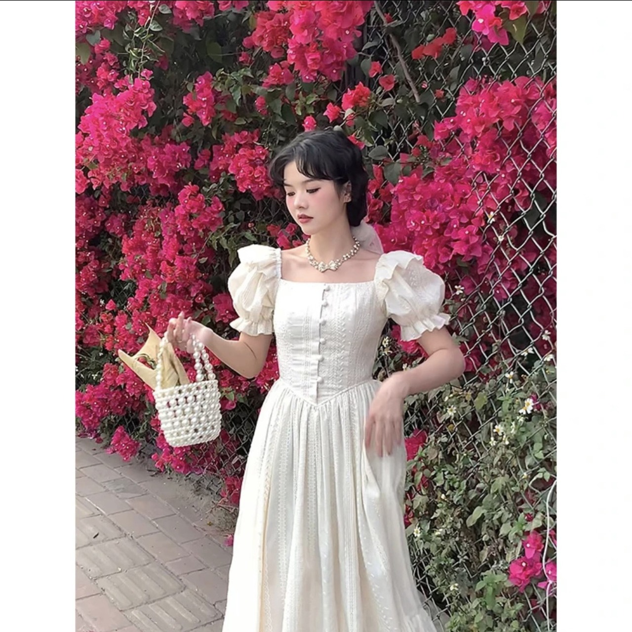 Nomikuma スクエアカラー Vestidos フリル パフ スリーブ ドレス ウエスト 因果 A ラインドレス Aライン スクウェア
