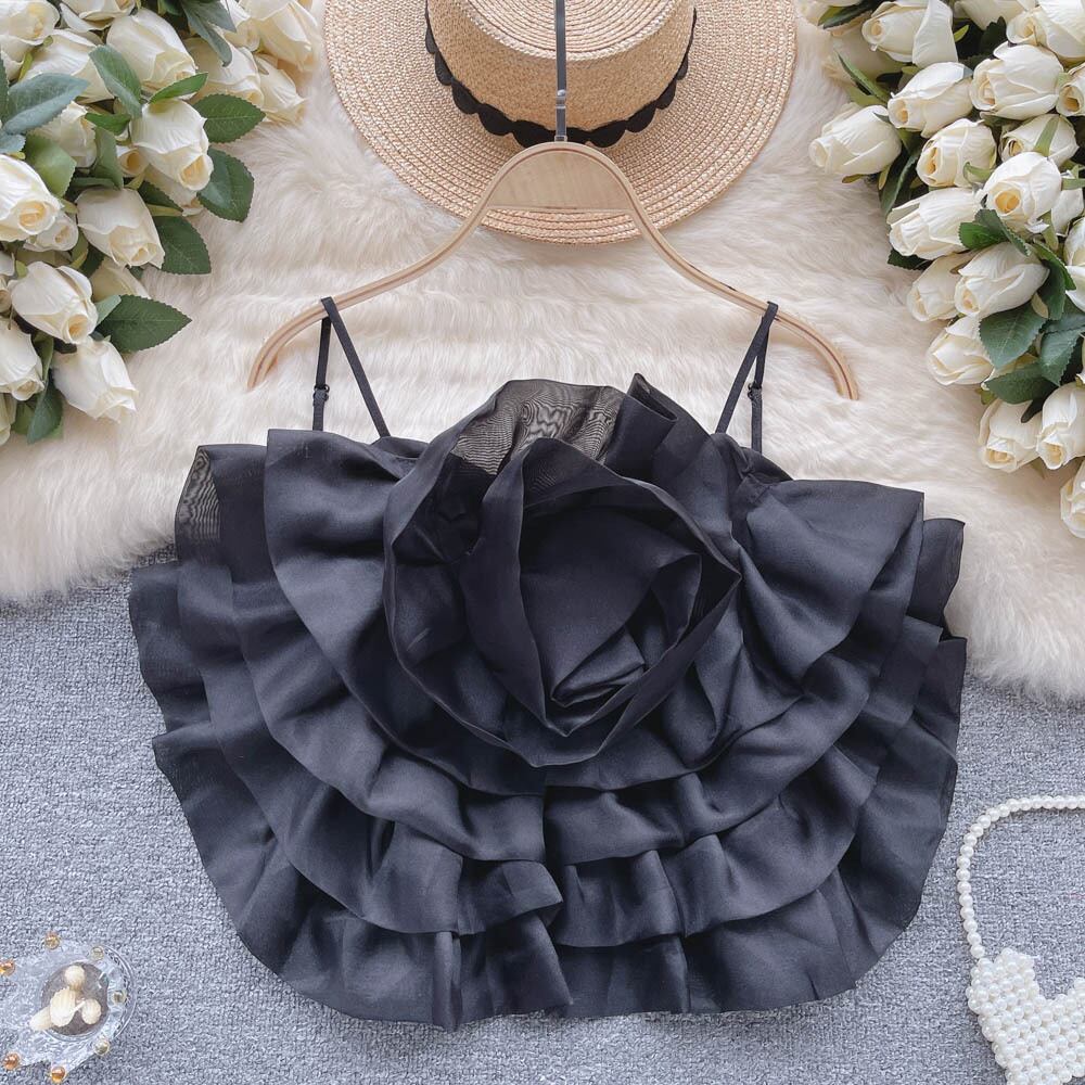 Nomikuma シックフラワーメッシュスウィートショートスリングベスト Sumemr キャミソールセクシー底入れタンクトップ 大人ガーリー キュート カジュアル フラワーデザイン