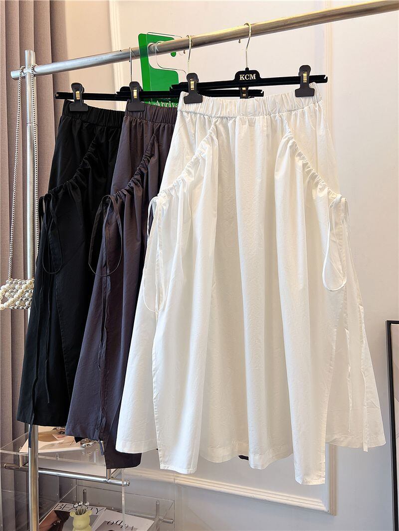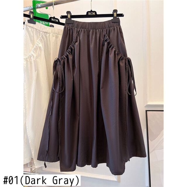 Nomikuma スタイル スカート レディース夏因果パッチワーク レースアップ ボトム弾性ウエスト A ライン スカート エラスティック 伸縮 サマー 夏物 Aライン