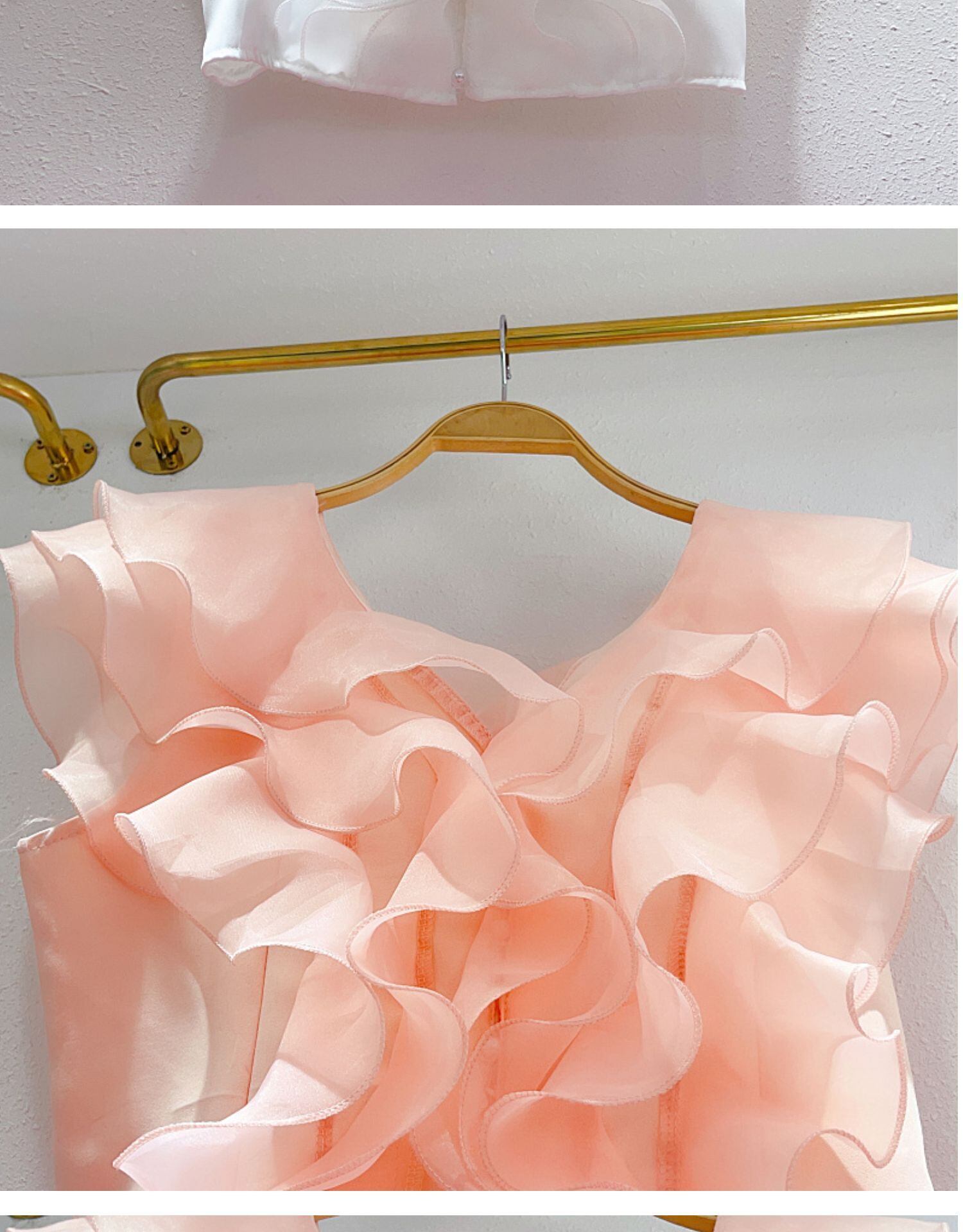 Nomikuam スウェット メッシュ 3D フリル パッチワーク V ネック ブラウス トップス ノースリーブ シングル ブレスト ショート レディース シャツ Vネック