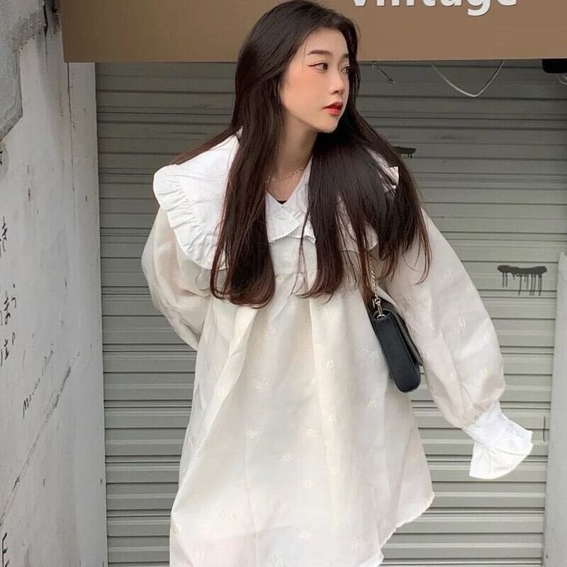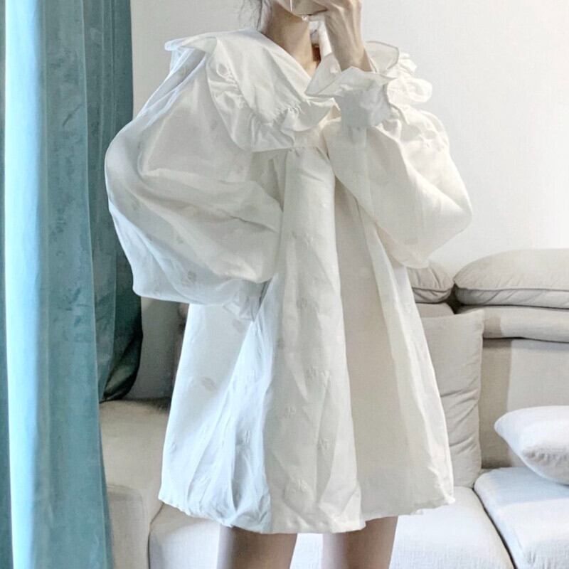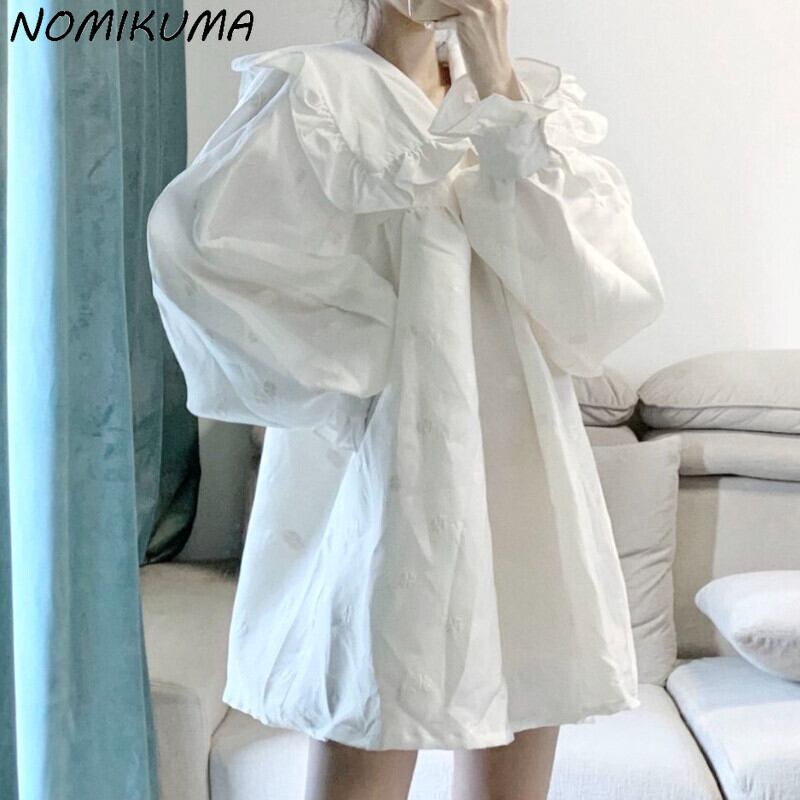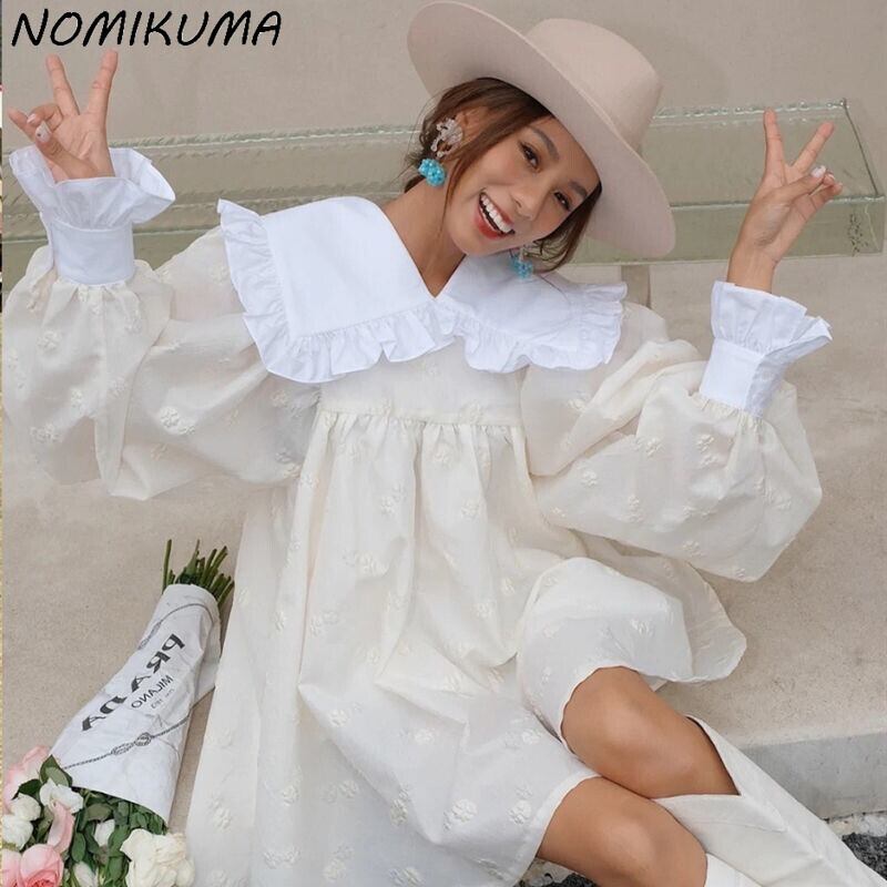 Nomikuma スウィート フリル ピーターパン カラードレス スウィート長袖因果 Vestidos シック A ライン ドレス ロング 大人ガーリー キュート カジュアル Aライン