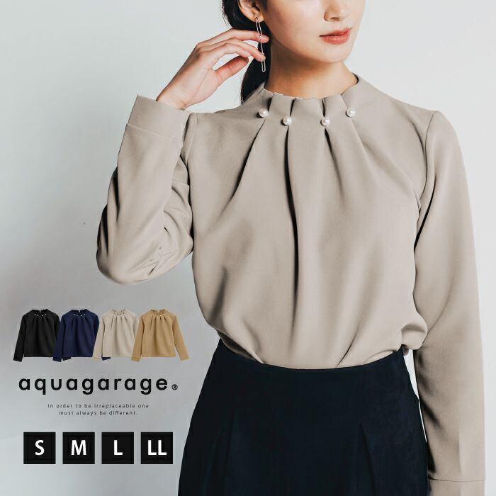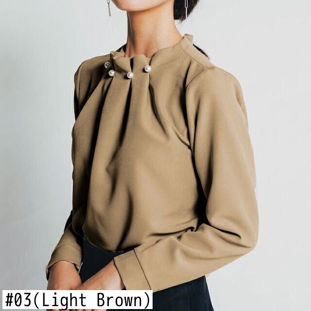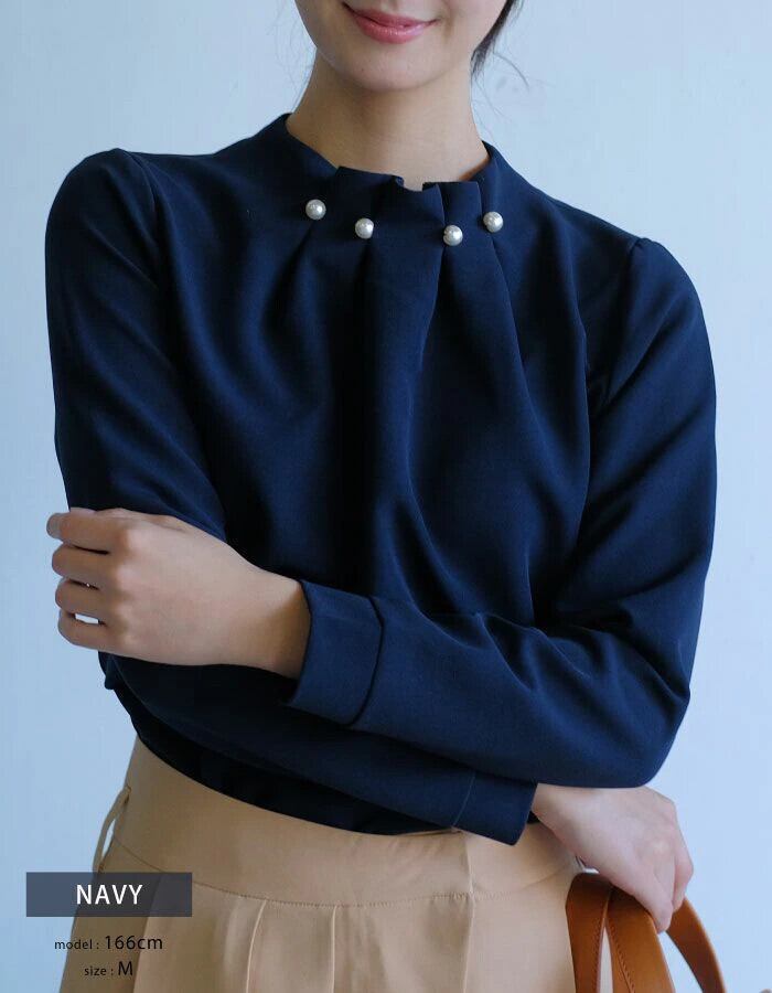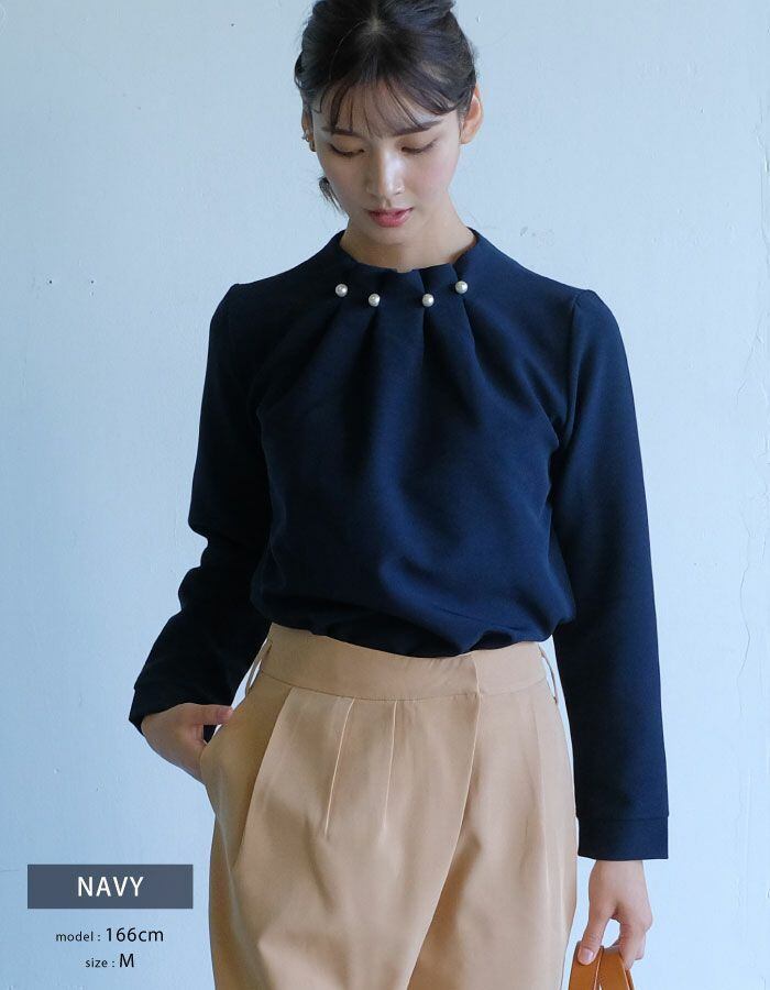 ノミクマ ビーズ スタンドネック レディース プルオーバー ブラウス トップス カジュアル 長袖シャツ ロング