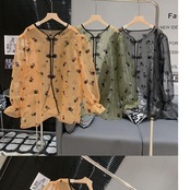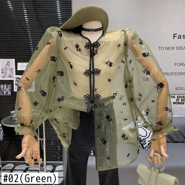 ノミクマ 中国風 シングルブレスト カーディガン トップス 夏 シースルー メッシュ 日焼け止め ブラウス コート サマー 夏物