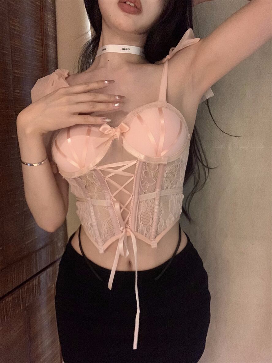 Nomikuma タンクレース包帯キャミソールセクシースリムショート底入れトップス夏タンクトップ サマー 夏物