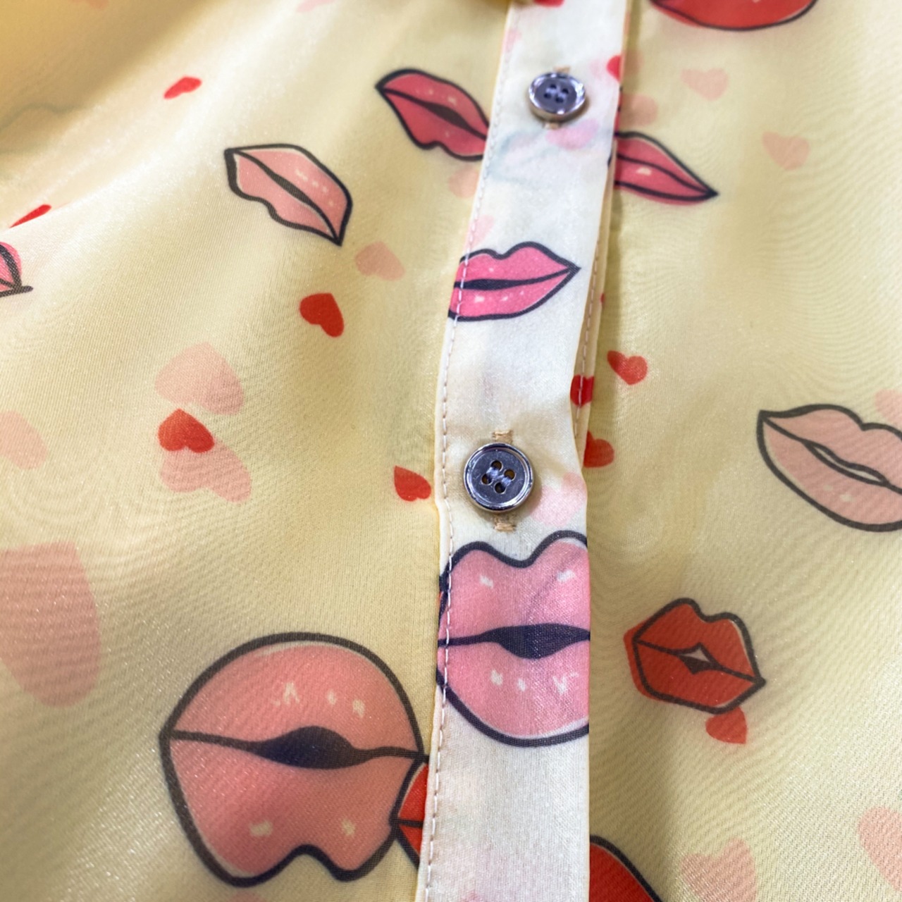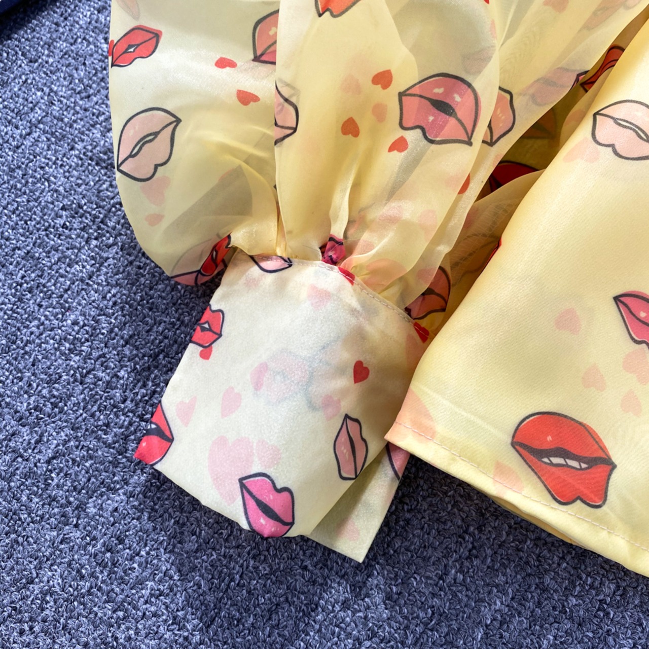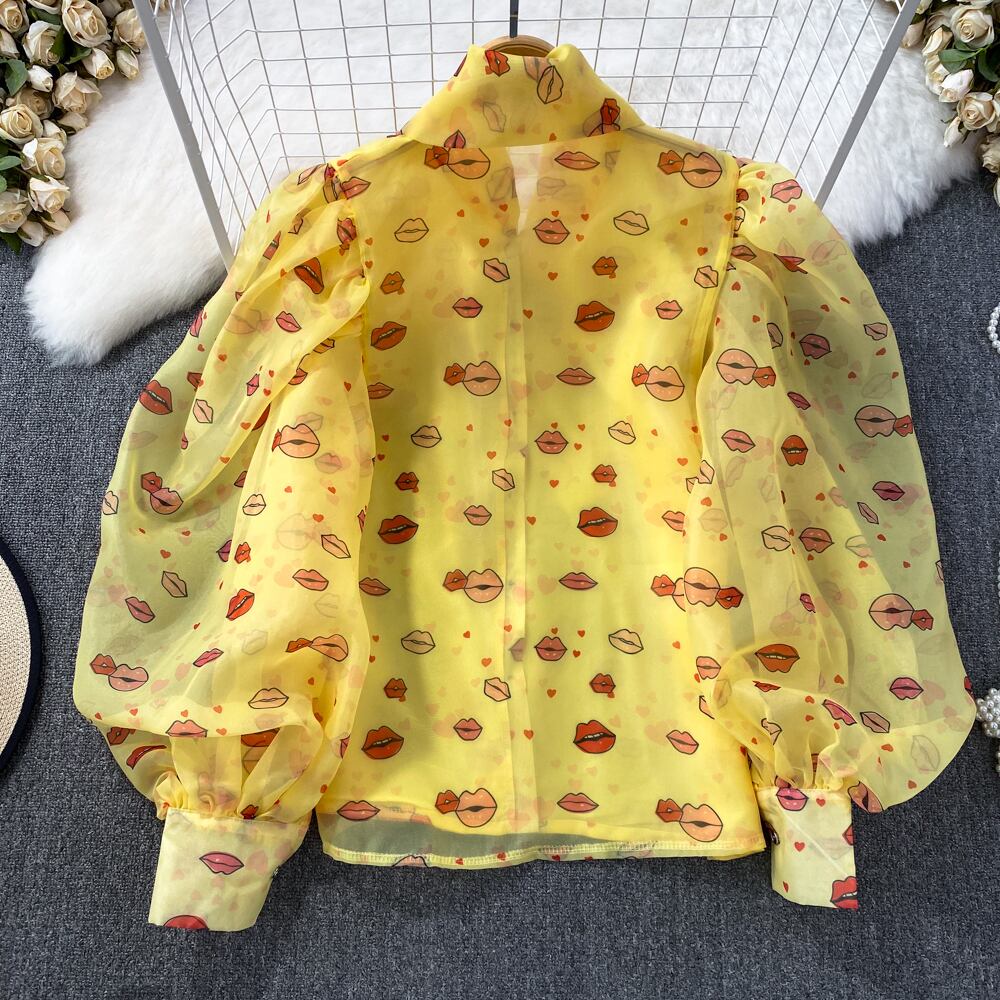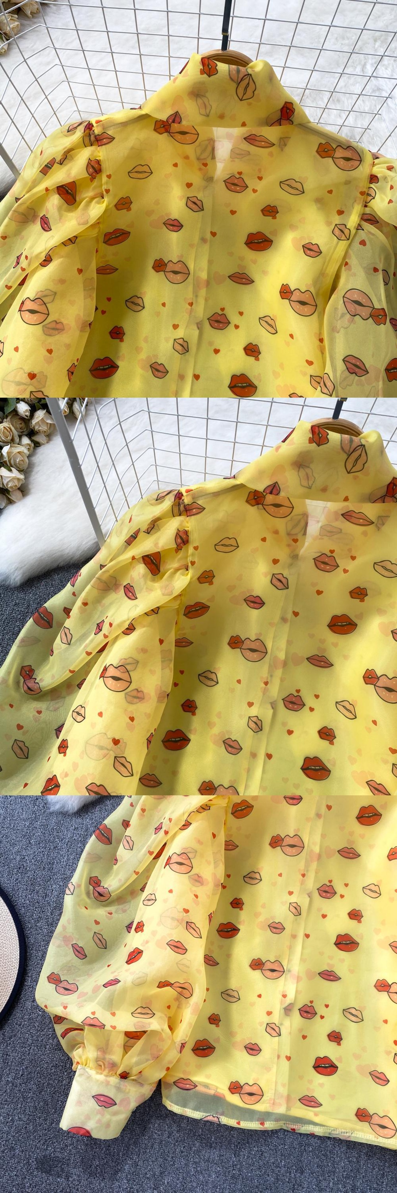 Nomikuma 甘い弓包帯ランタンスリーブプリントブラウストップスシックシャツデ リボン 大人ガーリー スウィート キュート カジュアル