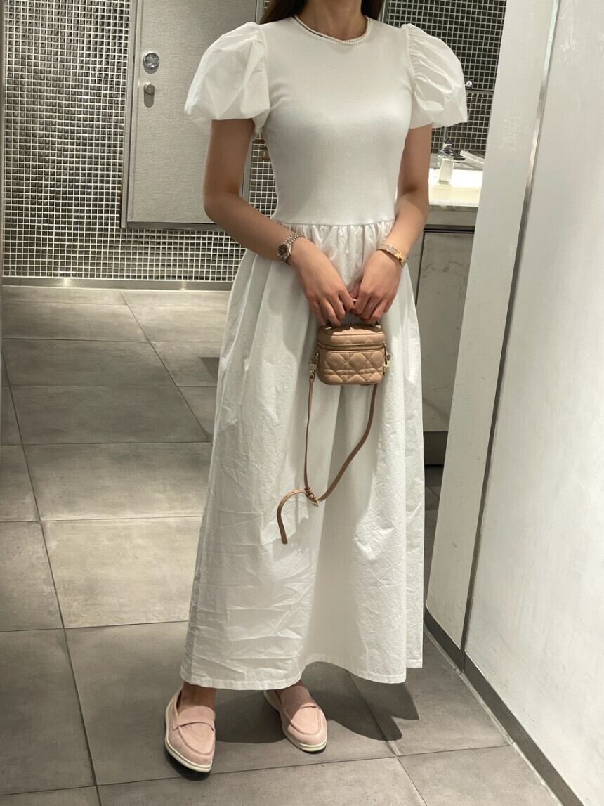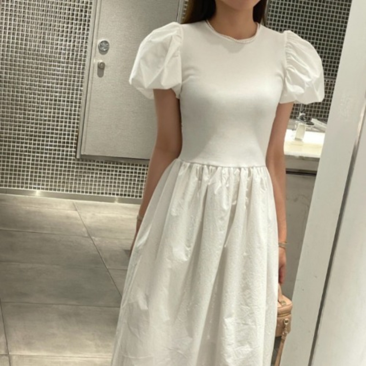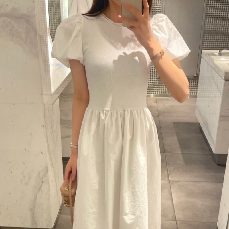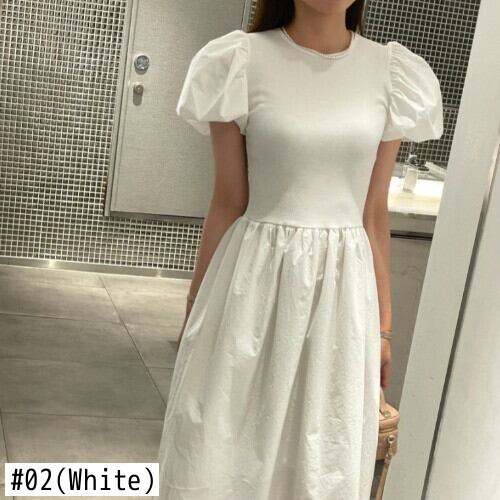 Nomikuma シックパフスリーブ O ネックニットパッチワークドレス Vestidos ウエストカジュアル A ラインドレス Oネック Aライン