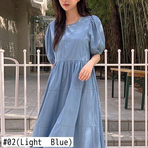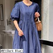 Nomikuma シック夏 O ネック徳民ドレス甘いパフスリーブウエスト因果 A ラインジーンズドレス 大人ガーリー スウィート キュート カジュアル サマー 夏物 Oネック Aライン
