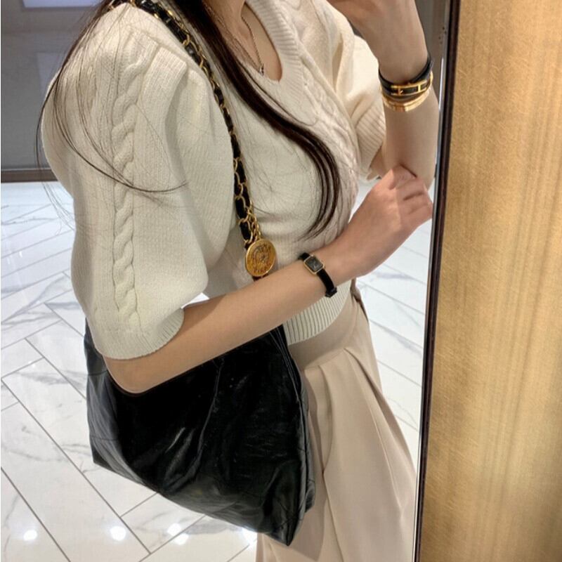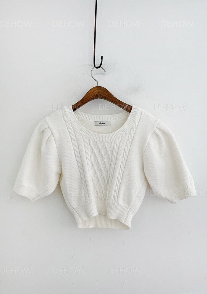 Nomikuma スウィート ツイスト ニット トップ Tシャツ パフ スリーブ O ネック プルオーバー サマー シャツ レディース 大人ガーリー キュート カジュアル 夏物 Oネック