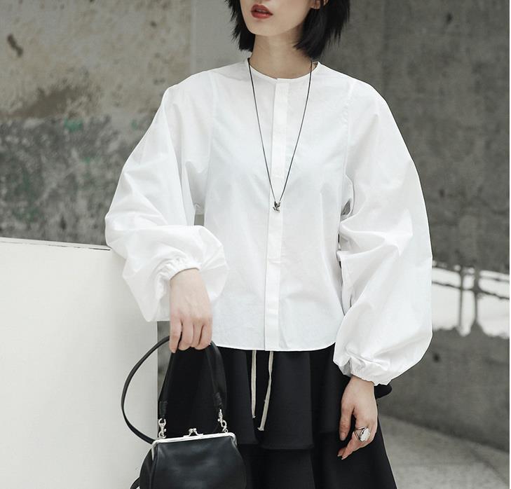 ノミクマ風 スタンドネック ランタンスリーブ ブラウス レディース シャツ シャツ カミサ