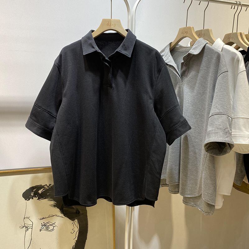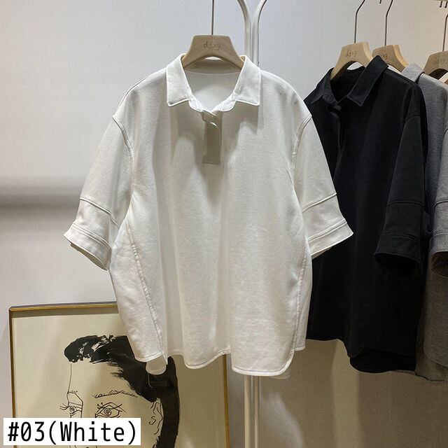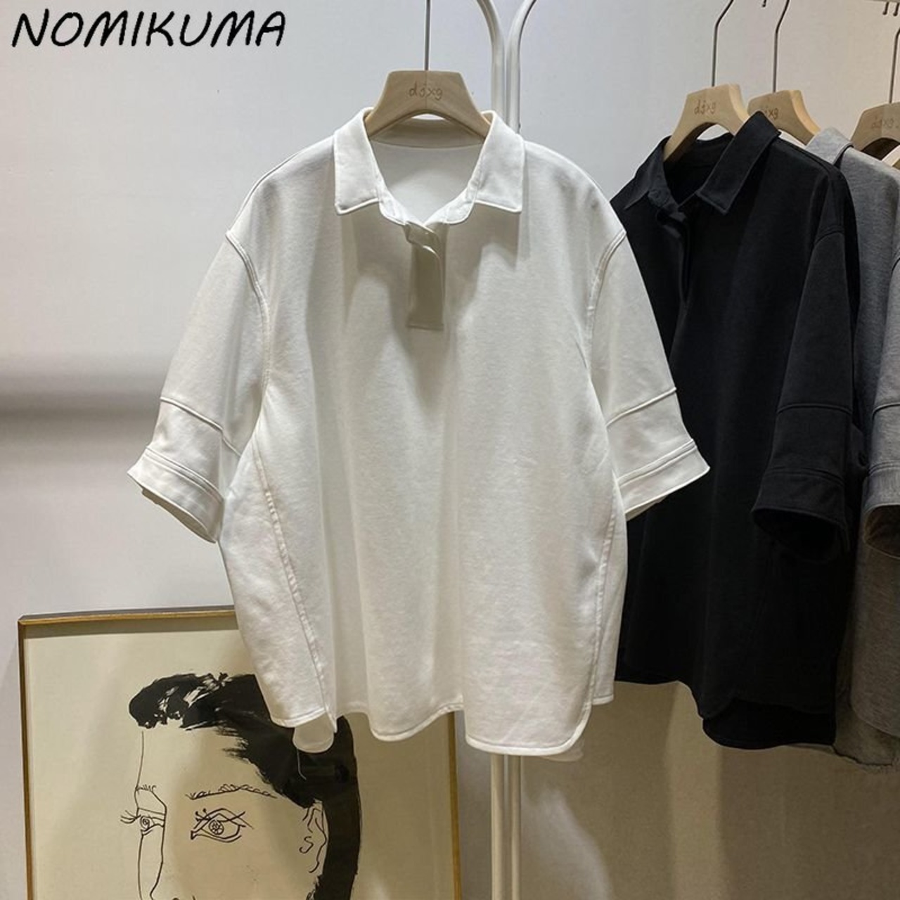 Nomikuma 夏ターンダウン襟半袖 Tシャツ因果無地トップス因果グラフィック Tシャツ ハーフスリーブ サマー 夏物 ソリッドカラー
