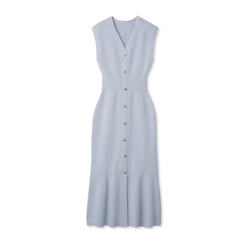 Nomikuma スリムウエストノースリーブロングローブ夏 Hapan スタイルドレスシングルブレストフリルドレス サマー 夏物