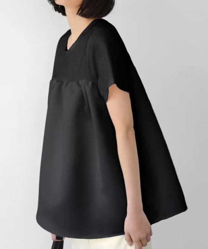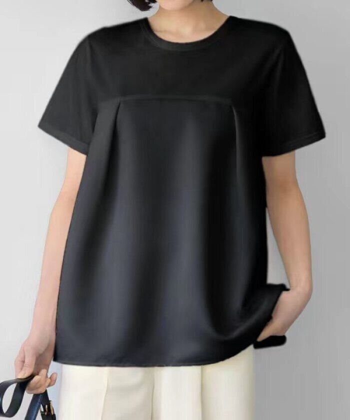 Nomikuma スタイル夏半袖 Tシャツ因果 O ネックプルオーバー不規則フリルパッチワークグラフィック Tシャツ ショート ハーフスリーブ サマー 夏物 Oネック