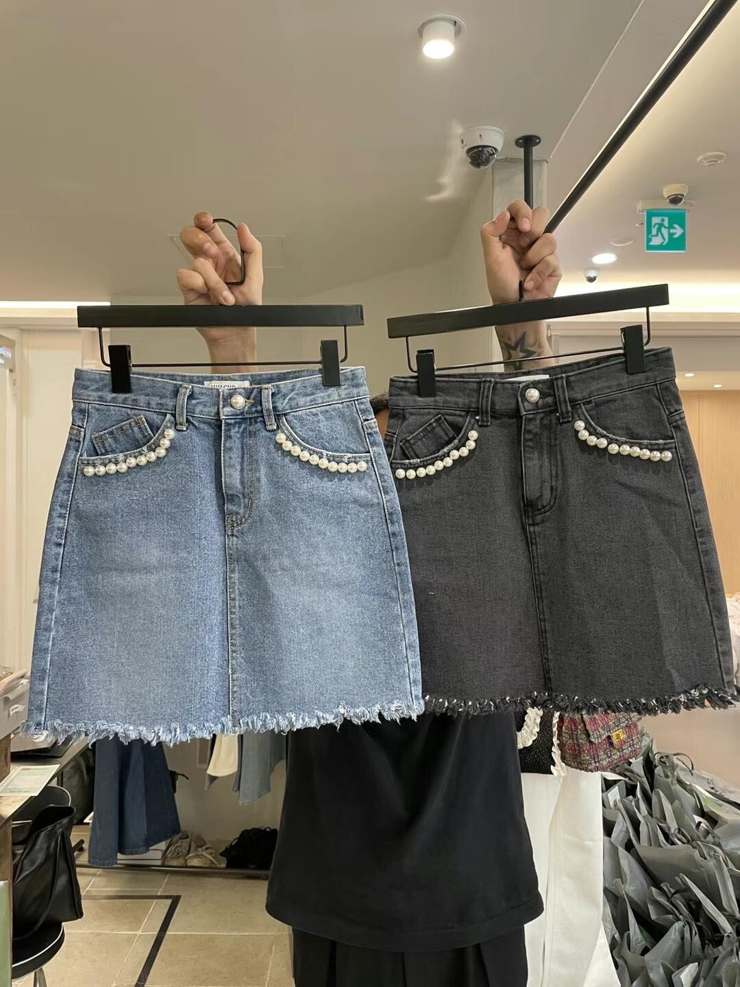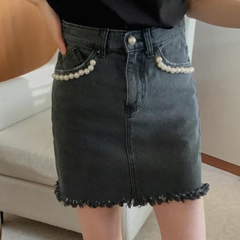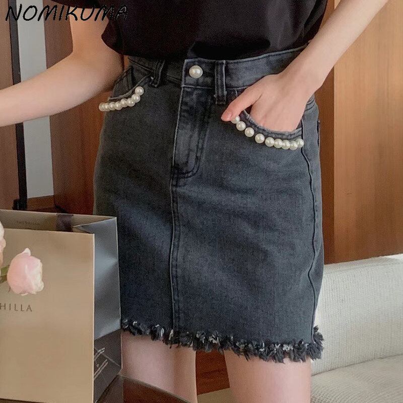 Nomikuma シックビーズ ポケットデミン スカート ウエスト A ライン Tel ジーンズ A ライン ミニ スカート Aライン