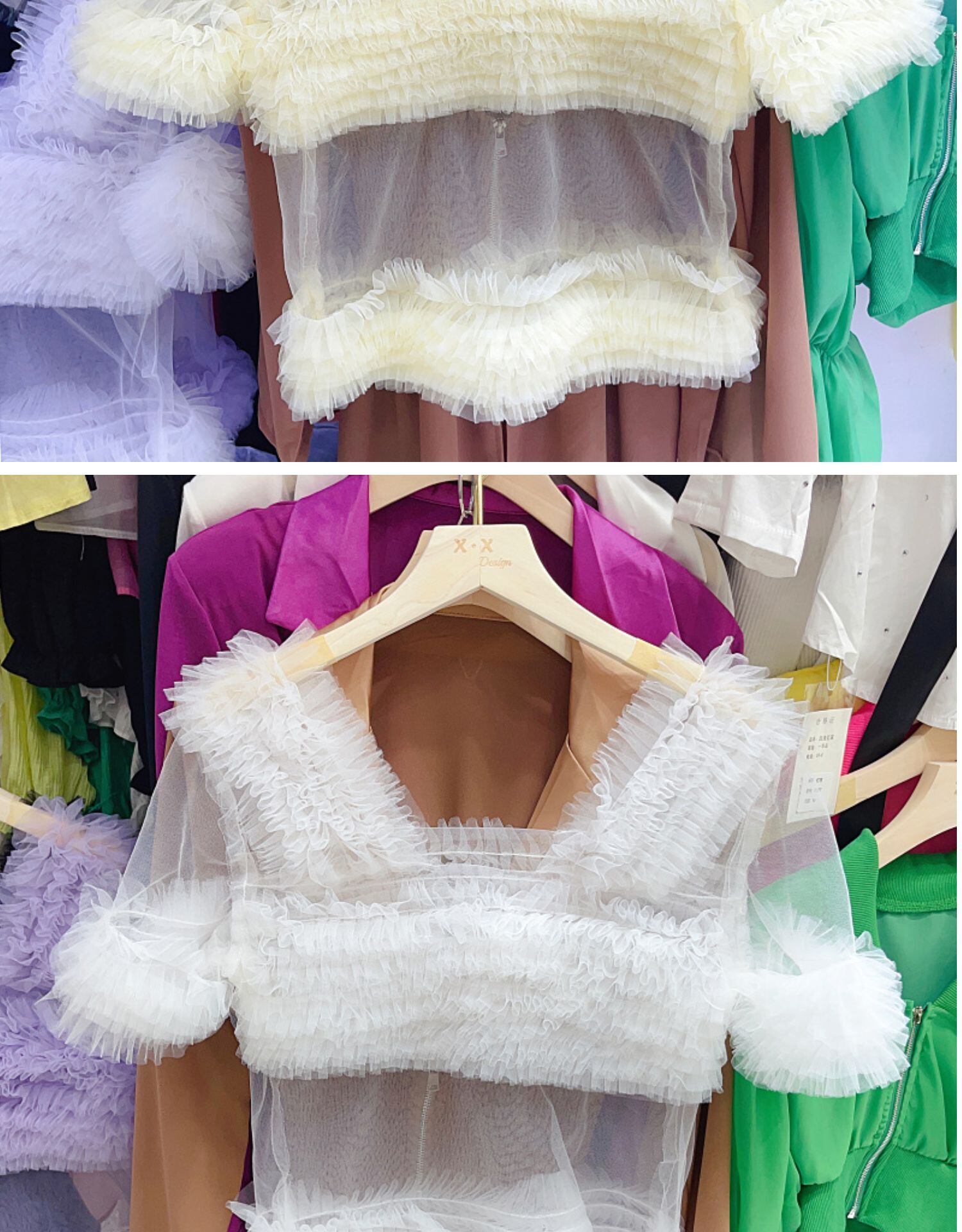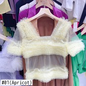 Nomikuma セクシーシースルーブラウス夏トップシャツシックメッシュパッチワーク半袖スクエア Colalr ショート ハーフスリーブ サマー 夏物 スクウェア