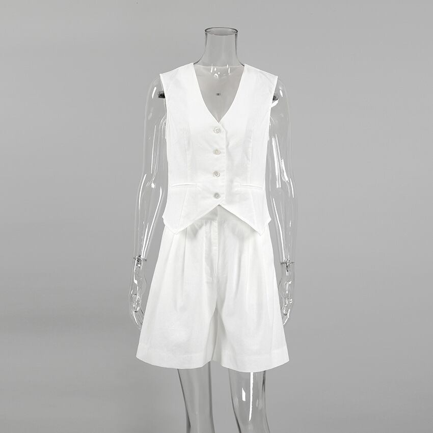 Nomikuma コットンリネン 2 ピースセット夏因果ノースリーブタンクトップ + ウエストワイドレッグショーツ衣装 サマー 夏物 ブルマー ワイドパンツ