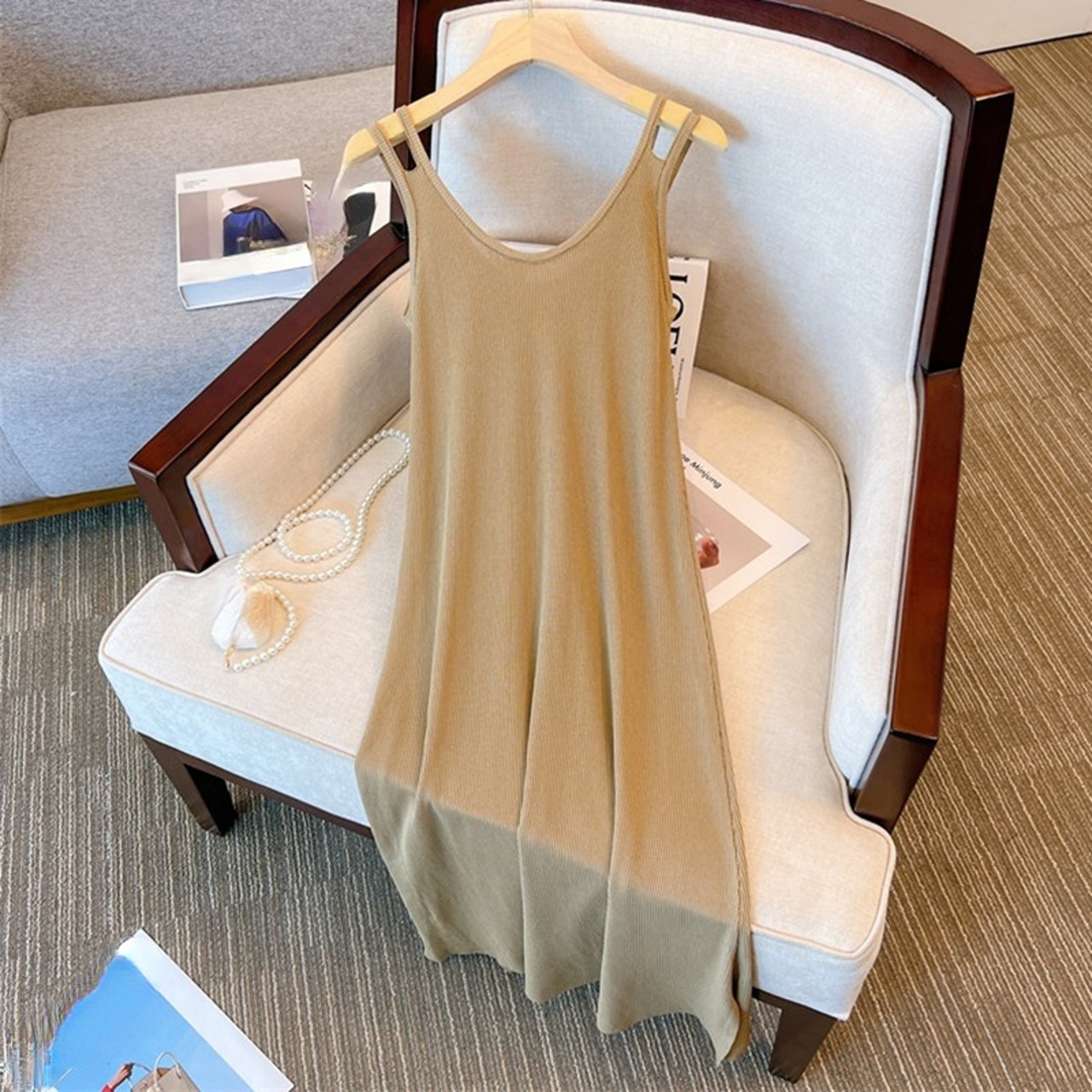 Nomikuma 春夏スパゲッティストラップドレス無地ニットタンクドレス因果 A ラインセータースリング Vestidos スプリング 春物 サマー 夏物 Aライン ソリッドカラー
