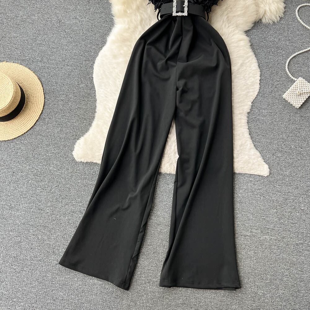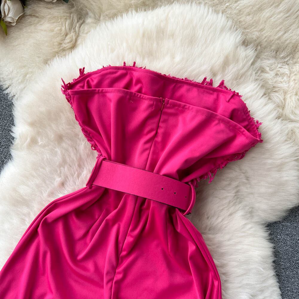 Nomikuma セクシージャンプスーツ夏スリムウエストワイド脚ボディスーツシック電話ストラップレスロンパース サマー 夏物 ワイドレッグ ワイドパンツ