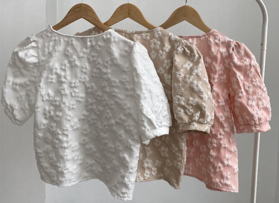 Nomikumaビーズスクエアカラーレディースブラウストップスジャカードパフスリーブシックサマーシャツ 夏物 スクウェア