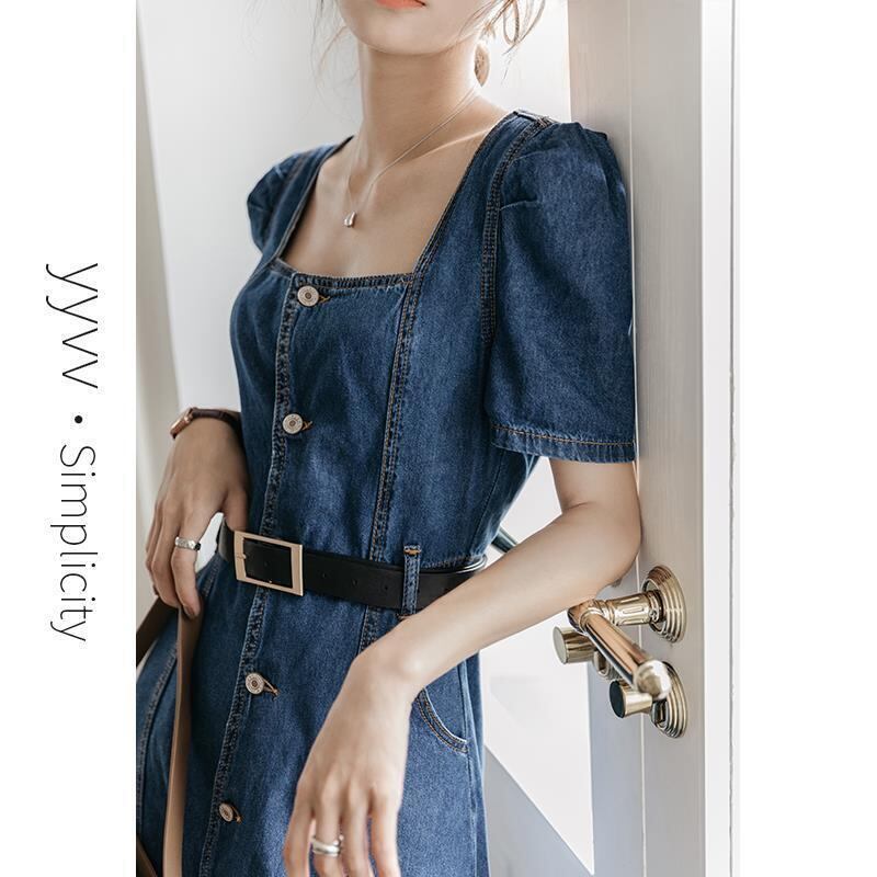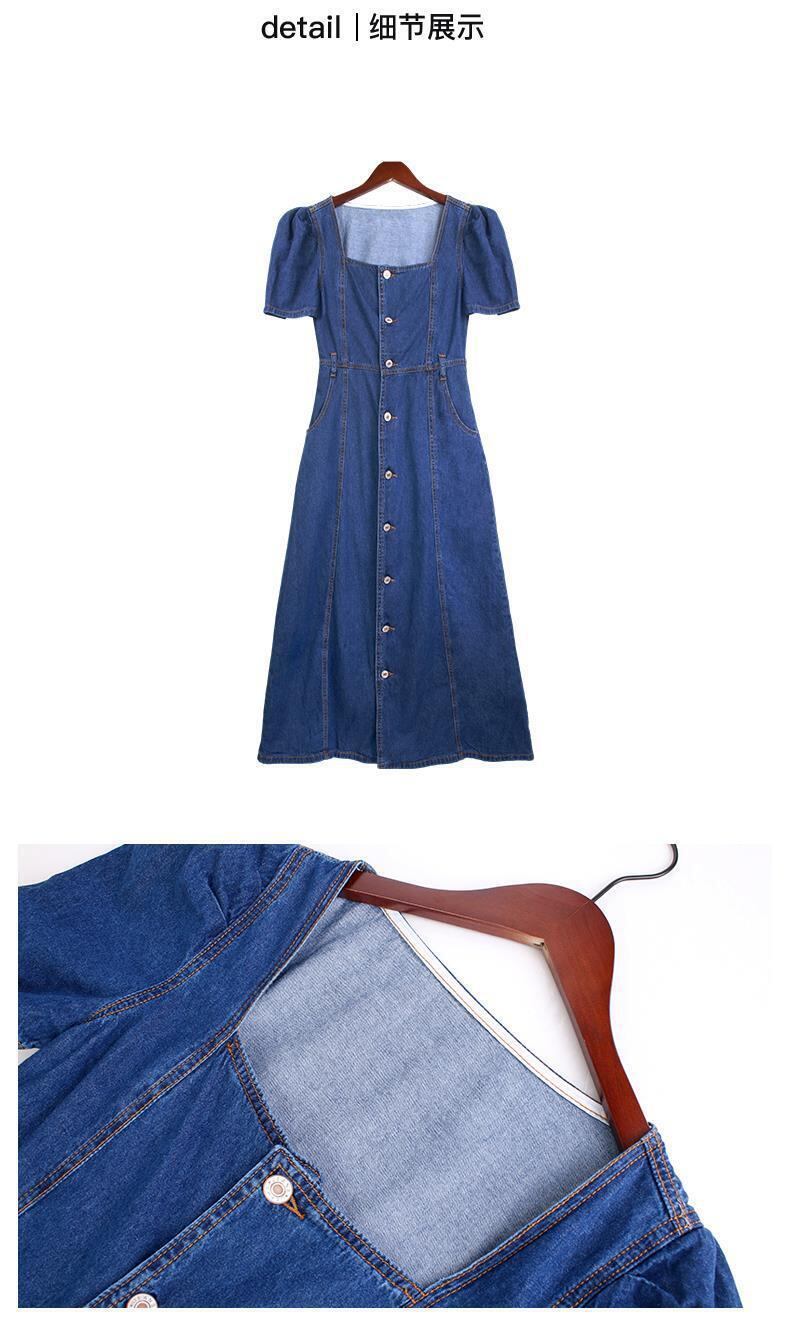 Nomikuma Demin ドレスサマードレスシングルブレストスクエアカラーパフスリーブジーンズ Vestidos 夏物 スクウェア
