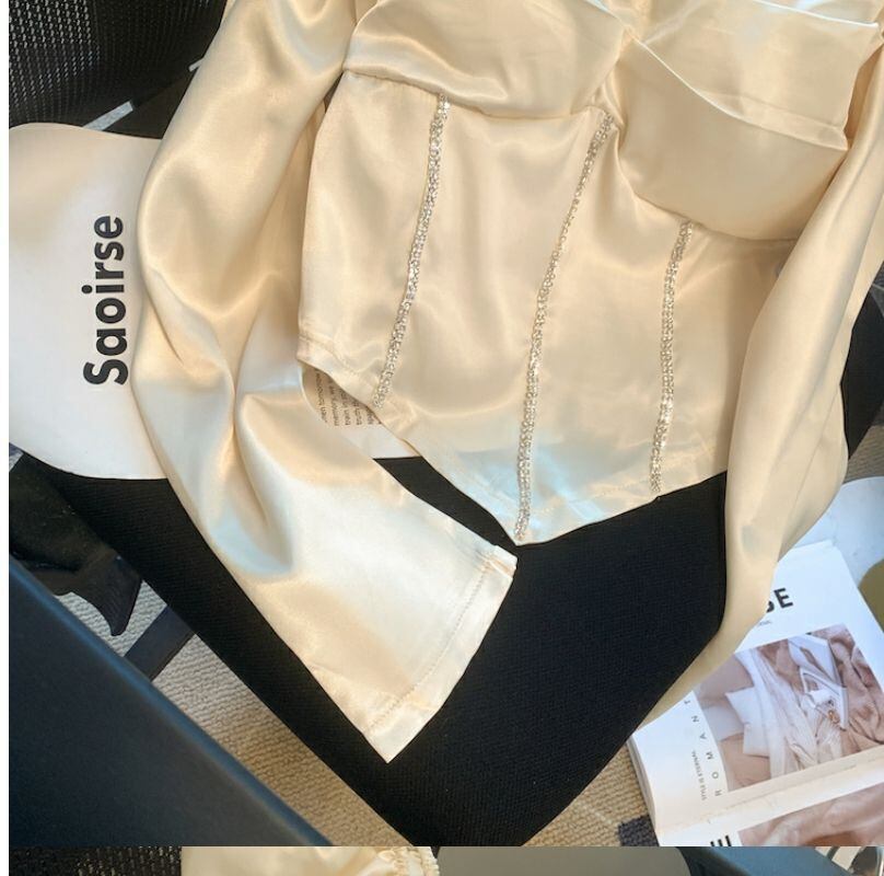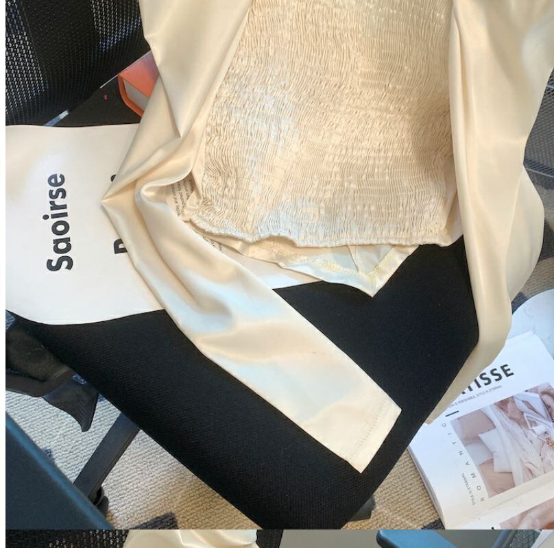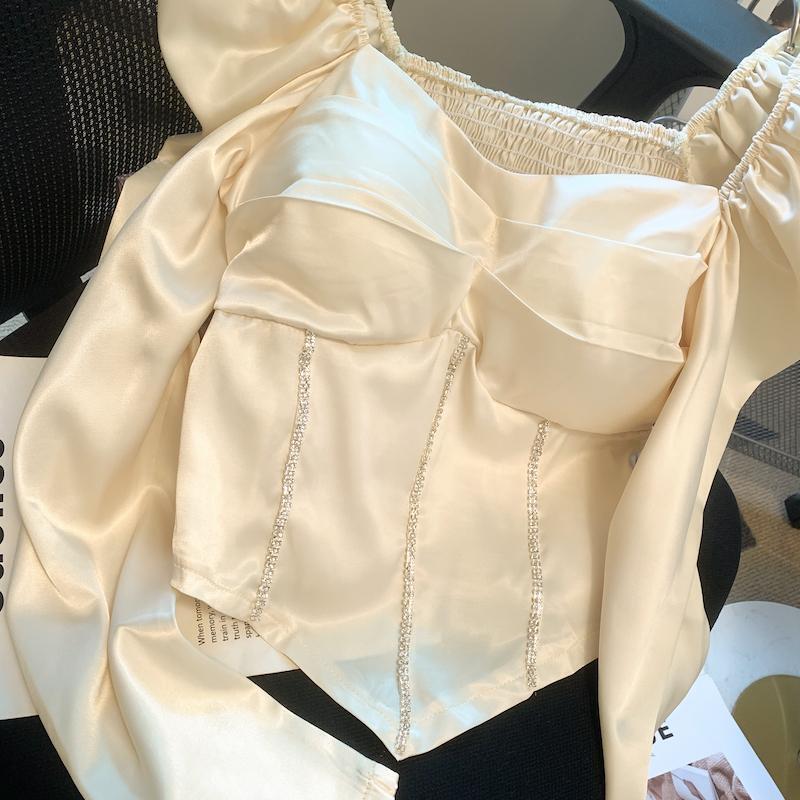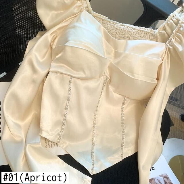 ノミクマ パフスリーブ スクエアカラー ブラウス トップス スリム ショート レディース シャツ スクウェア