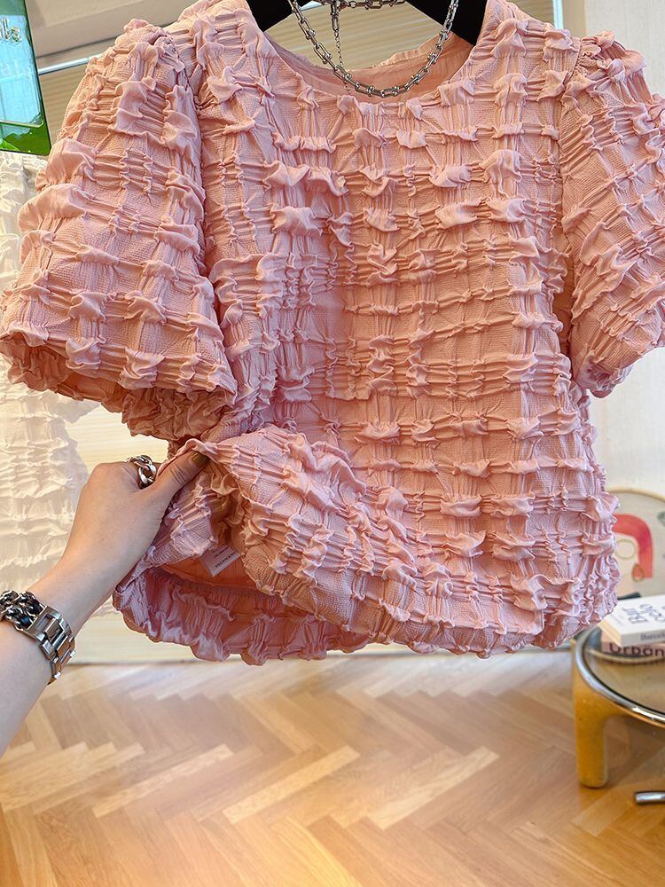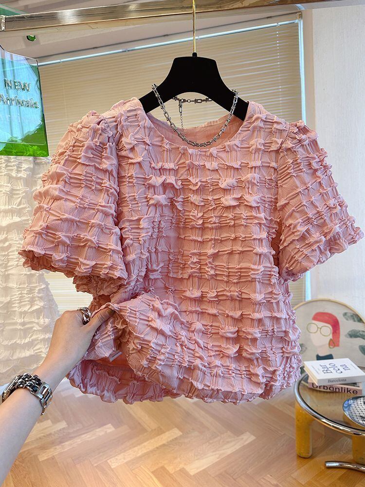Nomikuma シックパフスリーブ O ネック Tシャツ因果 O ネックプルオーバーシック Tシャツ夏甘いトップシャツ 大人ガーリー スウィート キュート カジュアル サマー 夏物 Oネック