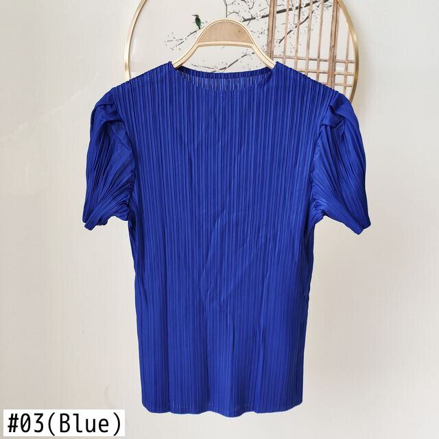 Nomikuma ひだストレッチスリム Tシャツ夏ランタンスリーブ O ネック Tシャツトップグラフィック Tシャツ サマー 夏物 Oネック