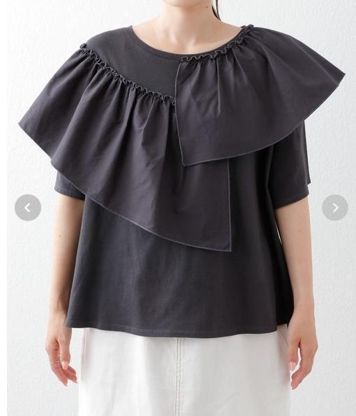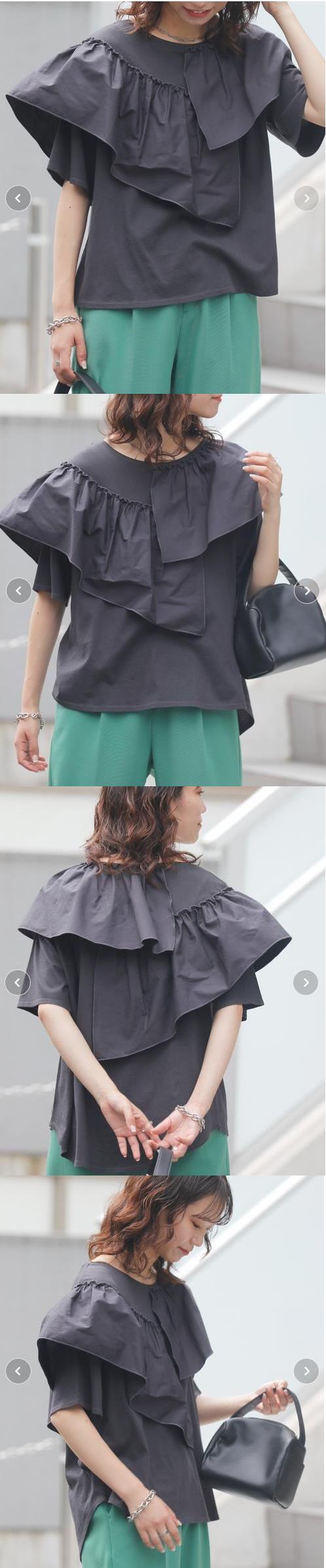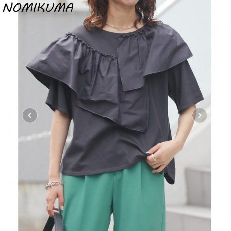 Nomikuma 夏フリルパッチワーク O ネック Tシャツ因果半袖甘いシックグラフィック Tシャツ ショート ハーフスリーブ 大人ガーリー スウィート キュート カジュアル サマー 夏物 Oネック