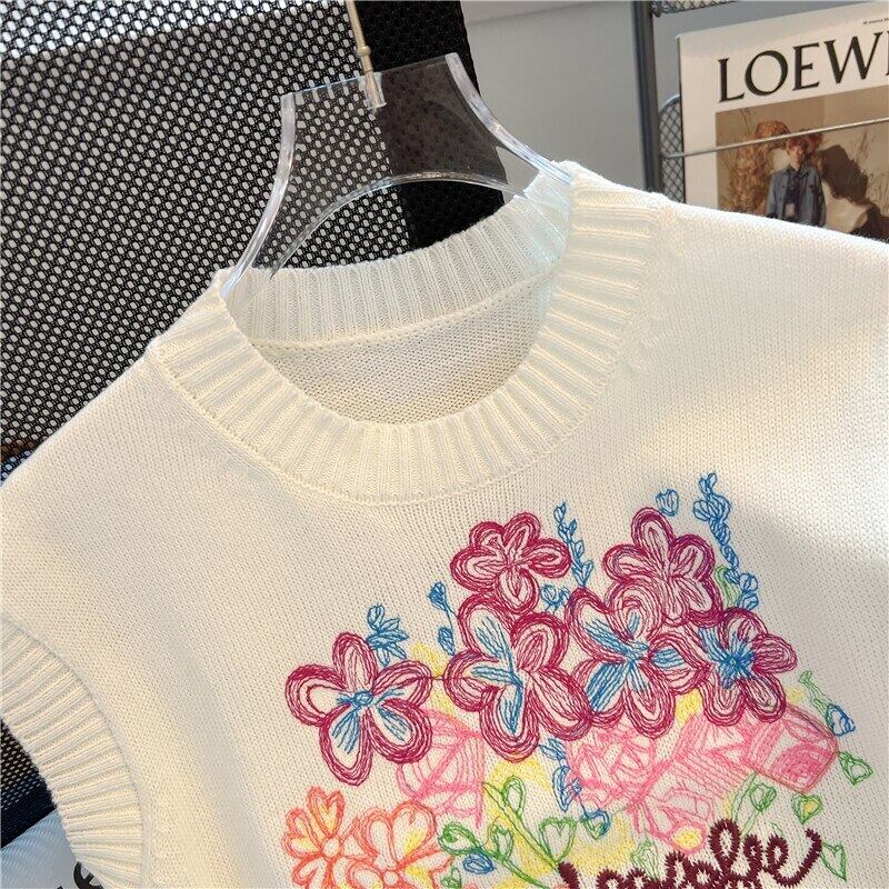 Nomikuma 夏刺繍スリムフィットショートできるニットタンクトップノースリーブトップスベスト サマー 夏物