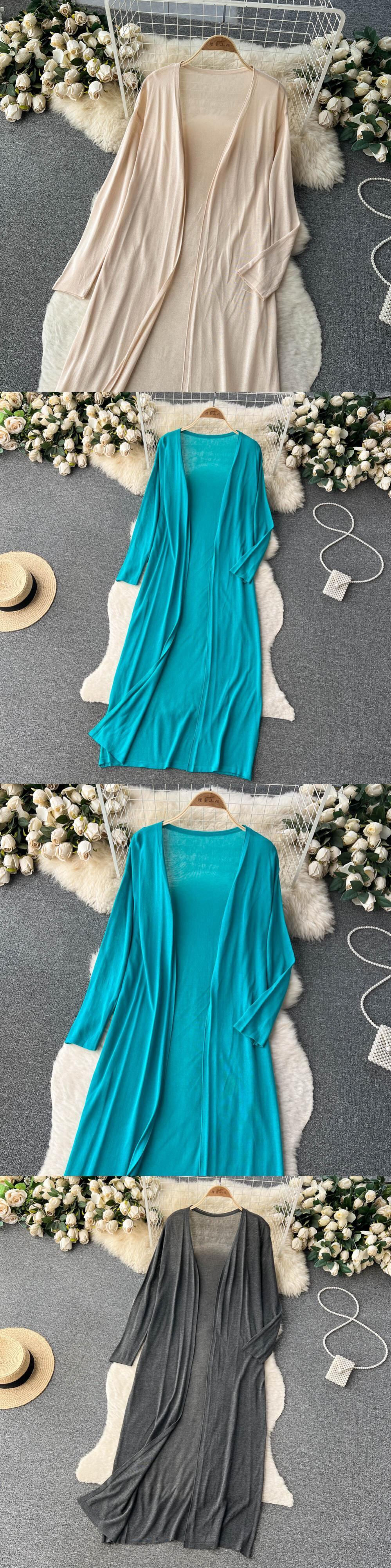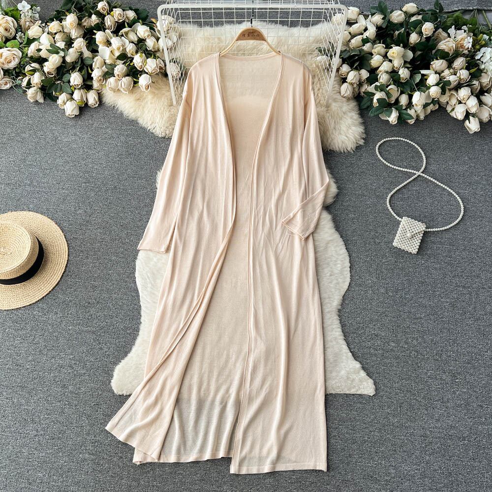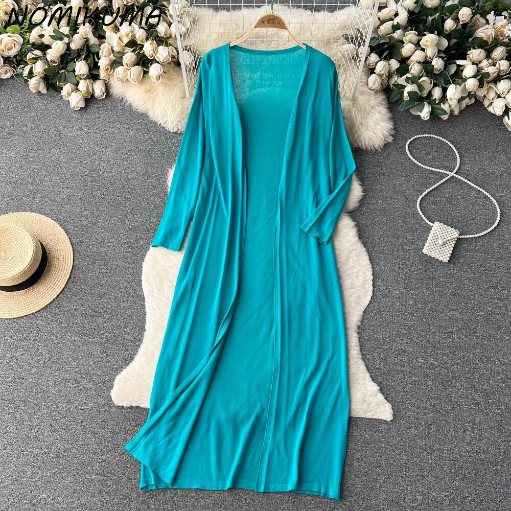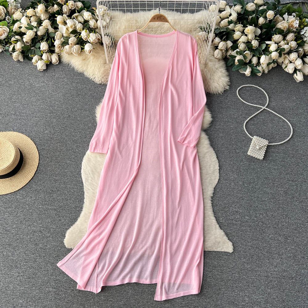 Nomikuma ニットカーディガン ロングコート レディース 夏 薄手 無地 長袖 日焼け止め ニット オープンステッチ 夏 サマー 夏物 ソリッドカラー