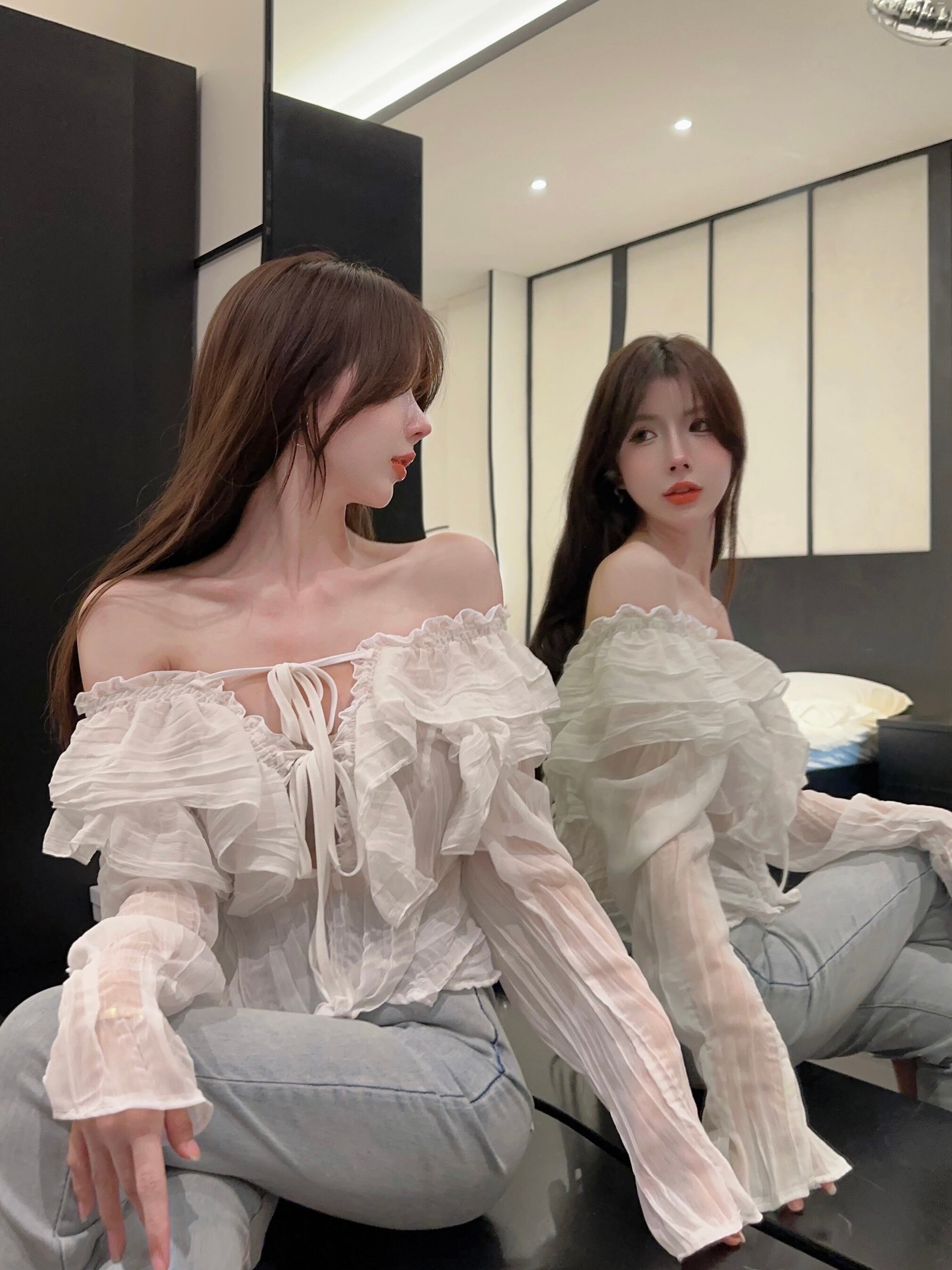 [ノミクマ] 日焼け止め フレア 長袖 シャツ レディース セクシー Vネック レースアップ トップス 夏 ブラウス ロング サマー 夏物